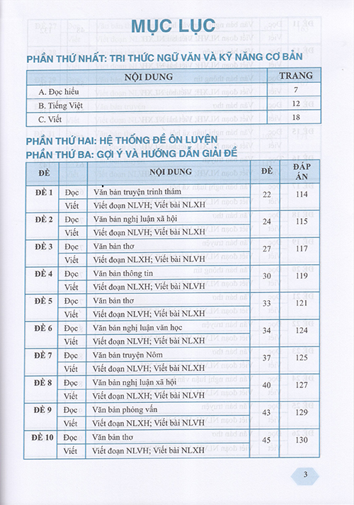 Phần Đọc - Hiểu: Gồm 42 đề, ngữ liệu bao phủ toàn bộ các thể loại/tiểu loại văn bản mà học sinh được học như: Truyện, Thơ, Nghị luận, Thông tin.