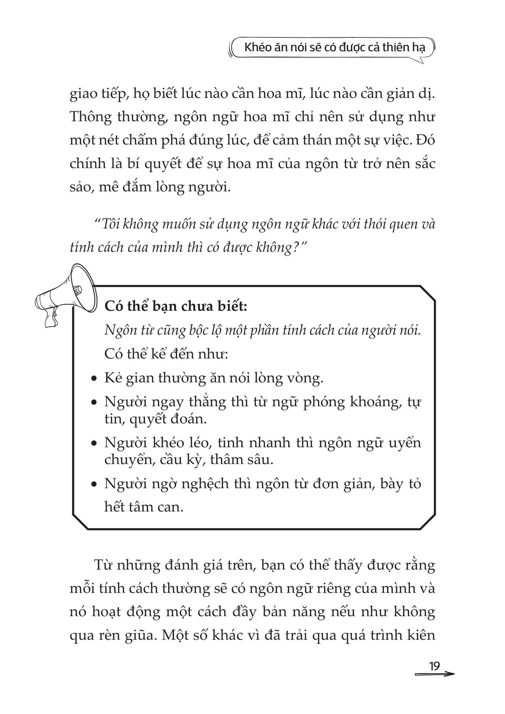 Với "Khéo ăn nói sẽ có được cả thiên hạ", bạn sẽ ngày càng thăng tiến trong công việc và trên đường trở thành một bậc thầy trong giao tiếp