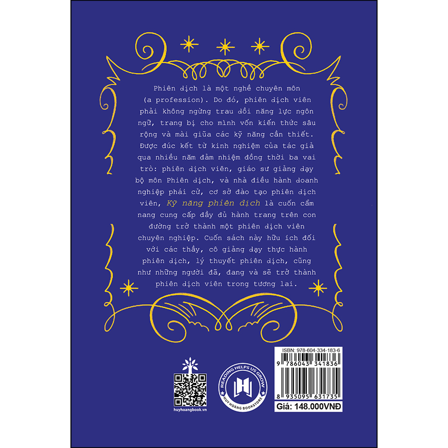 Phiên dịch là một nghề chuyên môn (a profession). Do đó, phiên dịch viên phải không ngừng trau dồi năng lực ngôn ngữ, trang bị cho mình vốn kiến thức sâu rộng và mài giũa các kỹ năng cần thiết. Được đúc kết từ kinh nghiệm của tác giả qua nhiều năm đảm nhiệm đồng thời ba vai trò: phiên dịch viên, giáo sư giảng dạy bộ môn Phiên dịch, và nhà điều hành doanh nghiệp phái cử, cơ sở đào tạo phiên dịch viên, Kỹ năng phiên dịch là cuốn cẩm nang cung cấp đầy đủ hành trang trên con đường trở thành một phiên dịch viên chuyên nghiệp. Cuốn sách này hữu ích đối với các thầy, cô giảng dạy thực hành phiên dịch, lý thuyết phiên dịch, cũng như những người đã, đang và sẽ trở thành phiên dịch viên trong tương lai.