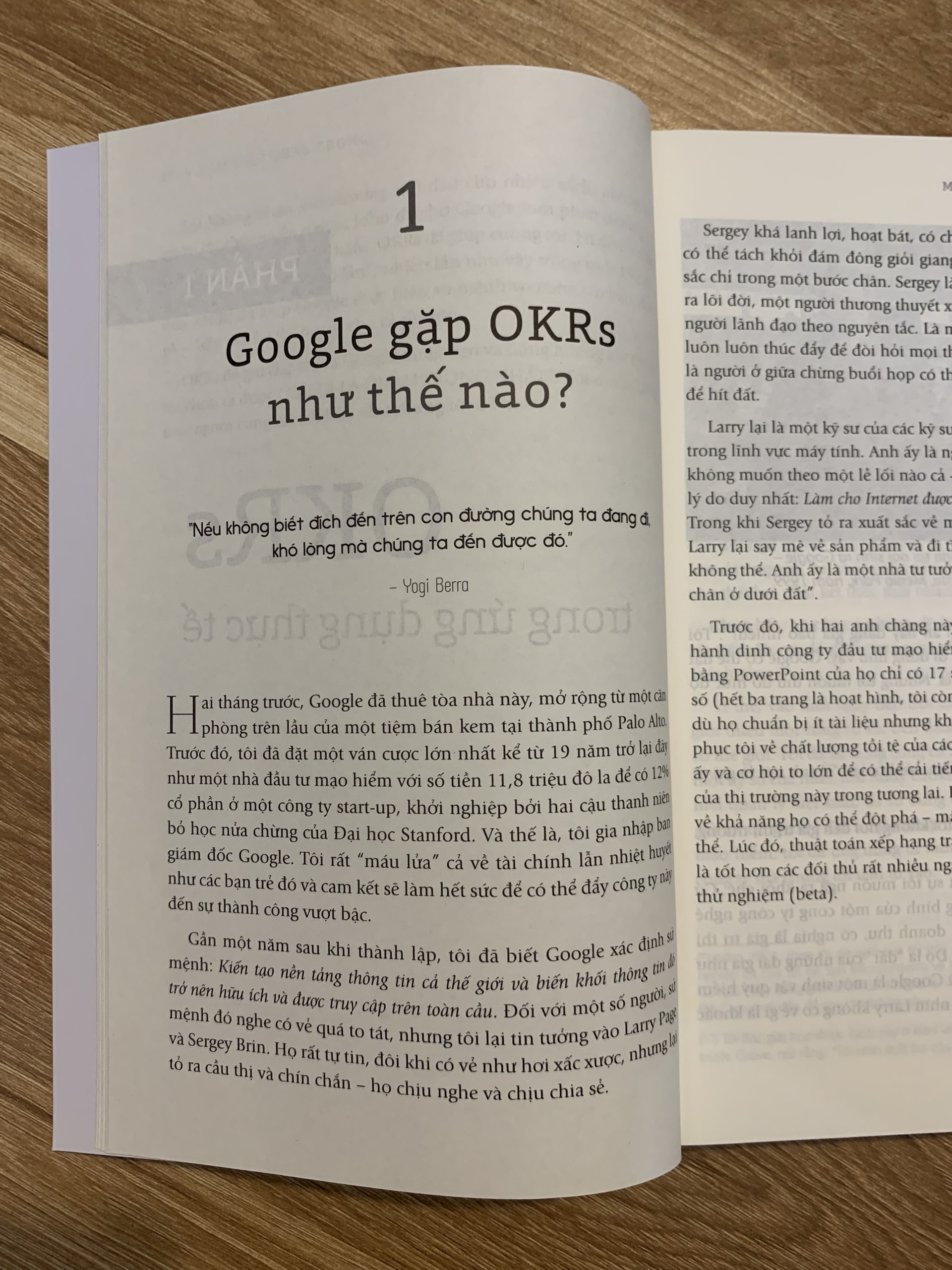 Quyển sách là tập hợp các câu chuyện có thật được chính những nhà sáng lập của Google, Nuna, MyFitnessPal, Remind, Gates Foundation, Ford, Wells Fargo,… kể lại. Có người thành công và cũng không thiếu người thất bại. Nhưng điểm chung là chúng đều để lại những bài học kinh nghiệm cho các nhà lãnh đạo khi muốn áp dụng OKRs.