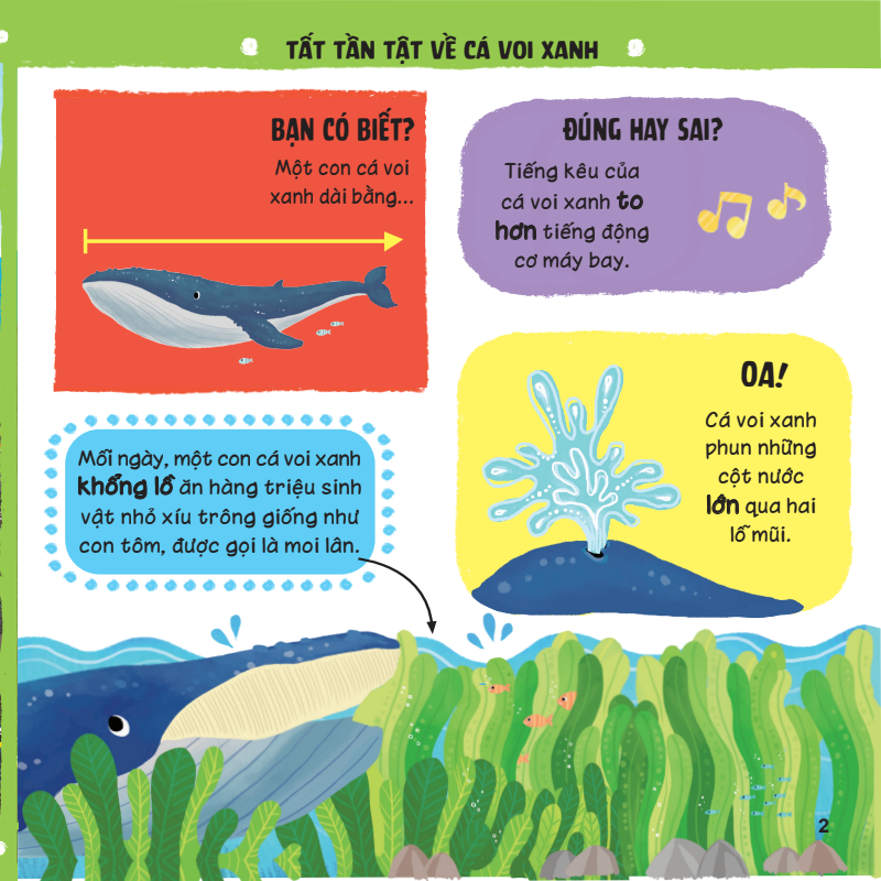 Cuốn sách sẽ bật mí cho bé bí mật chưa từng biết về Cá Voi Xanh, Báo Săn, Kangaroo, Hương Cao Cổ và một số loài vật khác trong hệ sinh thái rừng tự nhiên.