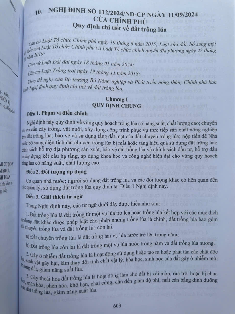 – Nghị định số 112/2024/NĐ-CP ngày 11/09/2024 Quy định chi tiết về đất trồng lúa