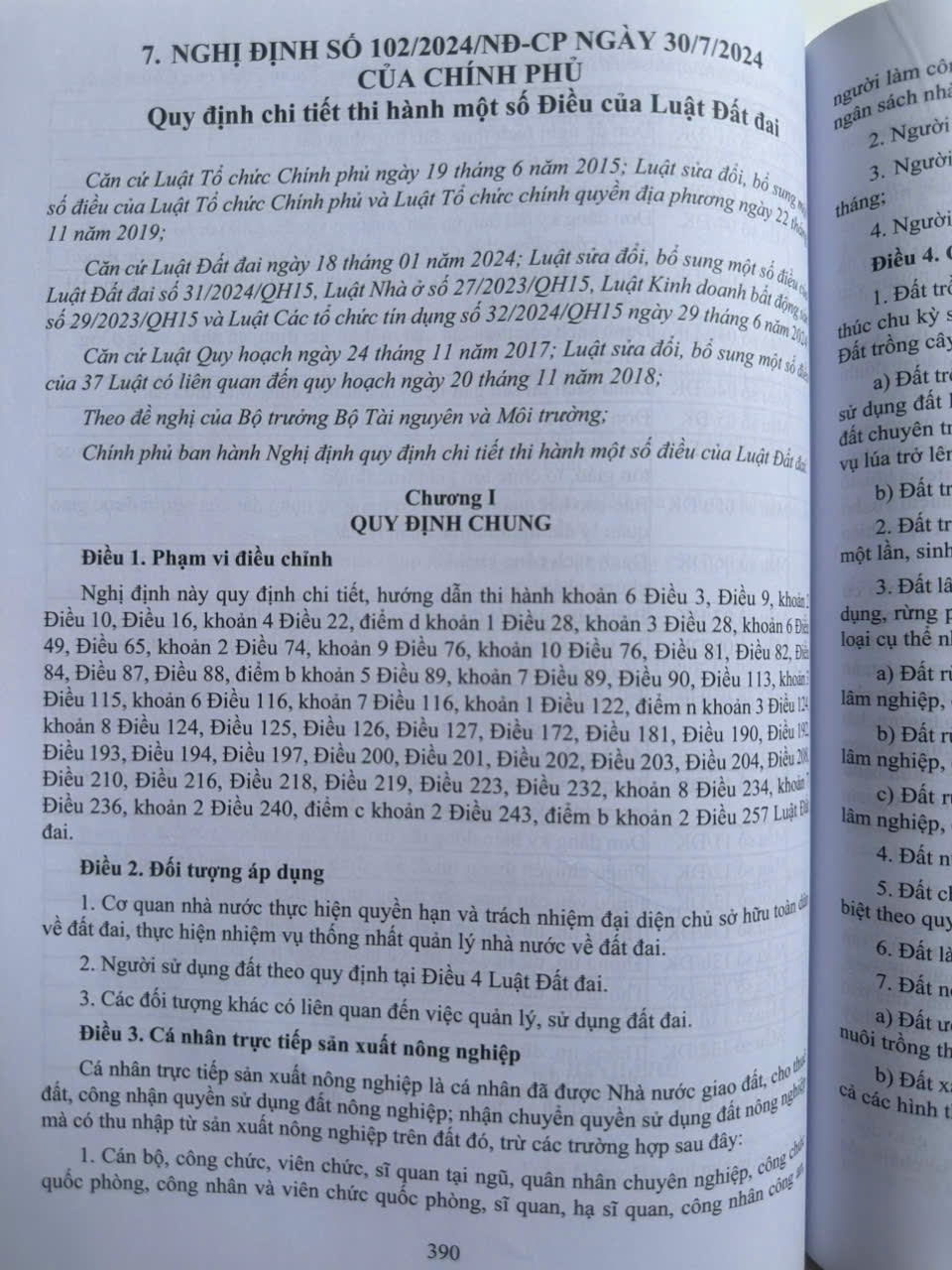 – Nghị định 102/2024/NĐ-CP ngày 30/7/2024 Quy định chi tiết thi hành một số điều của Luật Đất đai
