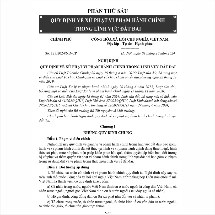 Ngày 18/01/2024, Quốc hội nước Cộng hòa xã hội chủ nghĩa Việt Nam thông qua Luật Đất đai số 31/2024/QH15, đã thể chế hóa đầy đủ, kịp thời các quan điểm, chủ trương của Đảng