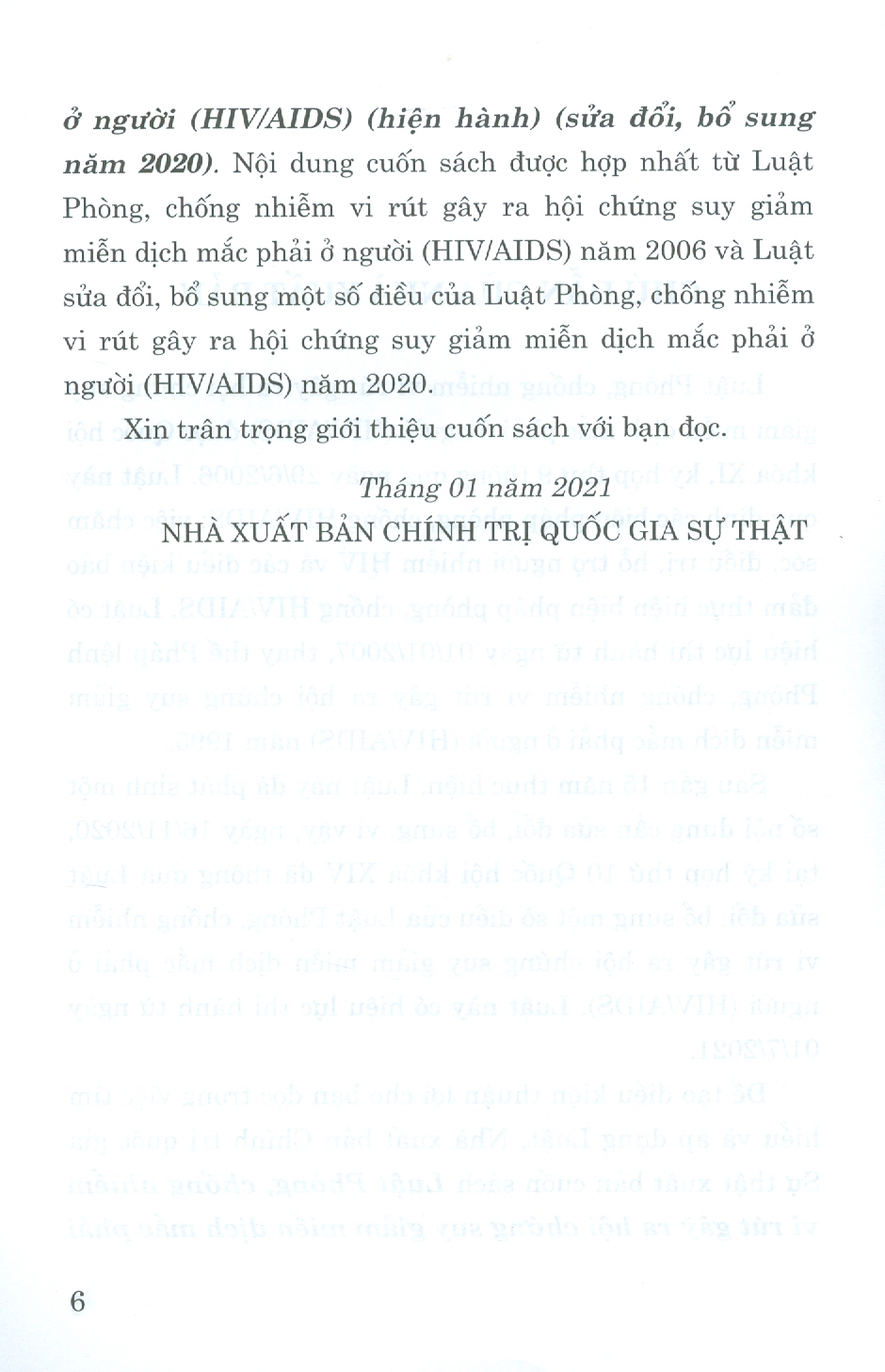 Nhằm đáp ứng nhu cầu của bạn đọc trong việc nghiên cứu, tìm hiểu, áp dụng pháp luật một cách thuận tiện, đầy đủ và thống nhất, Nhà xuất bản Chính trị quốc gia Sự