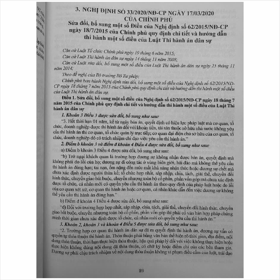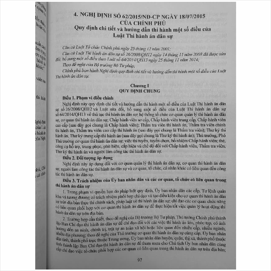 – Nghị định 152/2024/ND-CP ngày 15/11/2024 sửa đổi, bổ sung một số điều của Nghị định số 62/2015/NĐ-CP ngày 18/7/2015 quy định chi tiết và hướng dẫn thi hành một số Điều của Luật Thi hành án dân sự được sửa đổi, bổ sung một số Điều theo Nghị định số 33/2020/NĐ-CP ngày 17/3/2020 của Chính phủ,