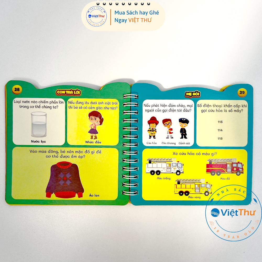 Bộ sách tập hợp những câu hỏi câu trả lời về cuộc sống quanh bé những đồ vật trong gia đình những mối quan hệ những ngày lễ truyền thống những hiểu biết về cơ thể giúp mẹ và bé tương tác với nhau để có thể cá giải trí thông minh những khả năng tìm ẩn qua đó cung cấp kiến thức cơ bản giúp bé vừa học vừa chơi