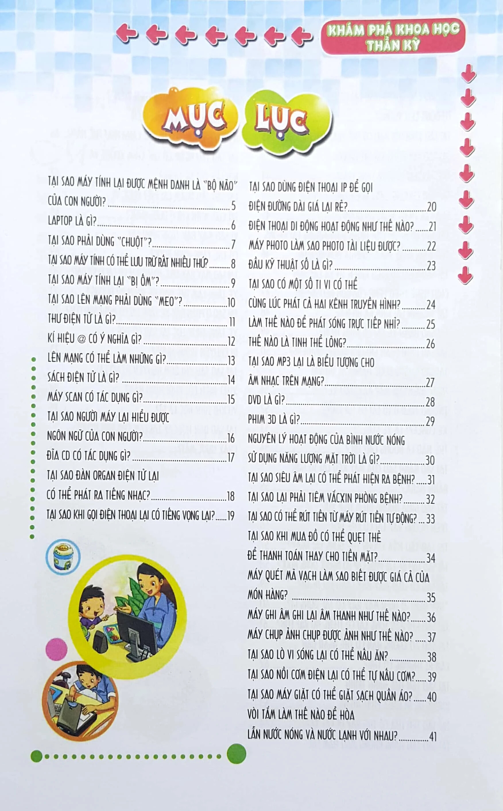 Bộ sách tuyển chọn câu hỏi mà trẻ em tò mò nhất với tiêu trí thú vị , thần kỳ , mới mẻ , đặc sắc . Trong cuốn sách có lời giải thích khoa