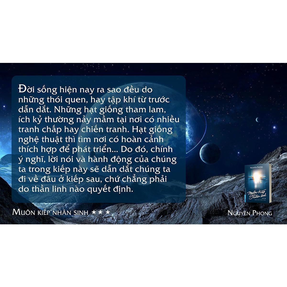 Thông qua 10 chương sách đan xen giữa quá khứ và hiện tại, giữa kể chuyện và lý luận, giữa hiện thực và huyền ảo, cuốn sách gợi ra những suy tư về vị thế và vai trò của con người nhỏ bé giữa vũ trụ bao la. Sau cùng, bảo toàn và phát huy tinh thần của hai tập trước, “Muôn Kiếp Nhân Sinh – tập 3”tiếp tục là một nỗ lực góp phần đưa con người về nẻo thiện, hướng đến một nhân loại hòa bình, bác ái, vị tha, bất kể màu da, quốc tịch và tôn giáo.