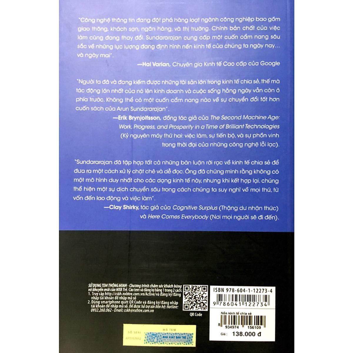 Dựa vào những nghiên cứu có chiều sâu và nhiều ví dụ từ thế giới thực - bao gồm Airbnb, Lyft, Uber, Etsy, TaskRabbit, BlaBlaCar của Pháp, Didi Kuaidi của Trung Quốc, Ola của Ấn Độ, Sundararajan giải thích được những căn bản của chủ nghĩa tư bản dựa trên đám đông. Ông mô tả sự pha trộn lý thú giữa “quà tặng” và “thị trường” trong quá trình chuyển hóa của chúng, làm sáng tỏ những công nghệ chuỗi khối đang xuất hiện, và phân loại những nền tảng theo-yêu-cầu đang gia tăng chóng mặt. Ông bàn luận về việc hình thái mới này sẽ làm thay đổi sự tăng trưởng kinh tế và tương lai của việc làm ra sao.