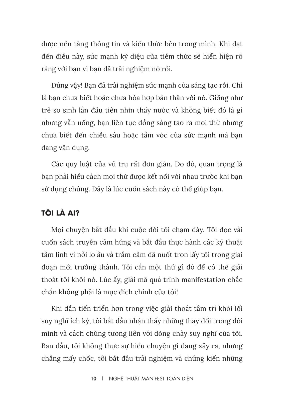 - Thói quen đơn giản hằng ngày giúp tái lập trình niềm tin và đẩy nhanh kết quả. Nghệ thuật manifest toàn diện sẽ mang đến một lộ trình rõ ràng để bạn thay đổi tư duy, sức mạnh tiềm thức và nâng cao tần số rung động của bản thân trong mọi khía cạnh cuộc sống từ đó thay đổi thực tại của chính m.ình.