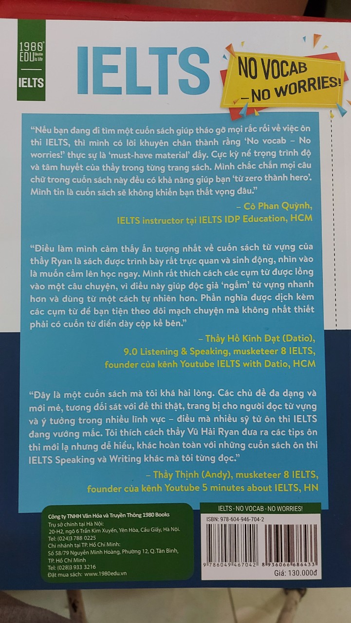 1. No Vocab - No Worries Tên Nhà Cung Cấp 1980 Books Tác giả Vũ Hải NXB NXB Đại học Kinh tế quốc dân Năm XB 2019 Số trang 196 Bạn đang chuẩn bị thi