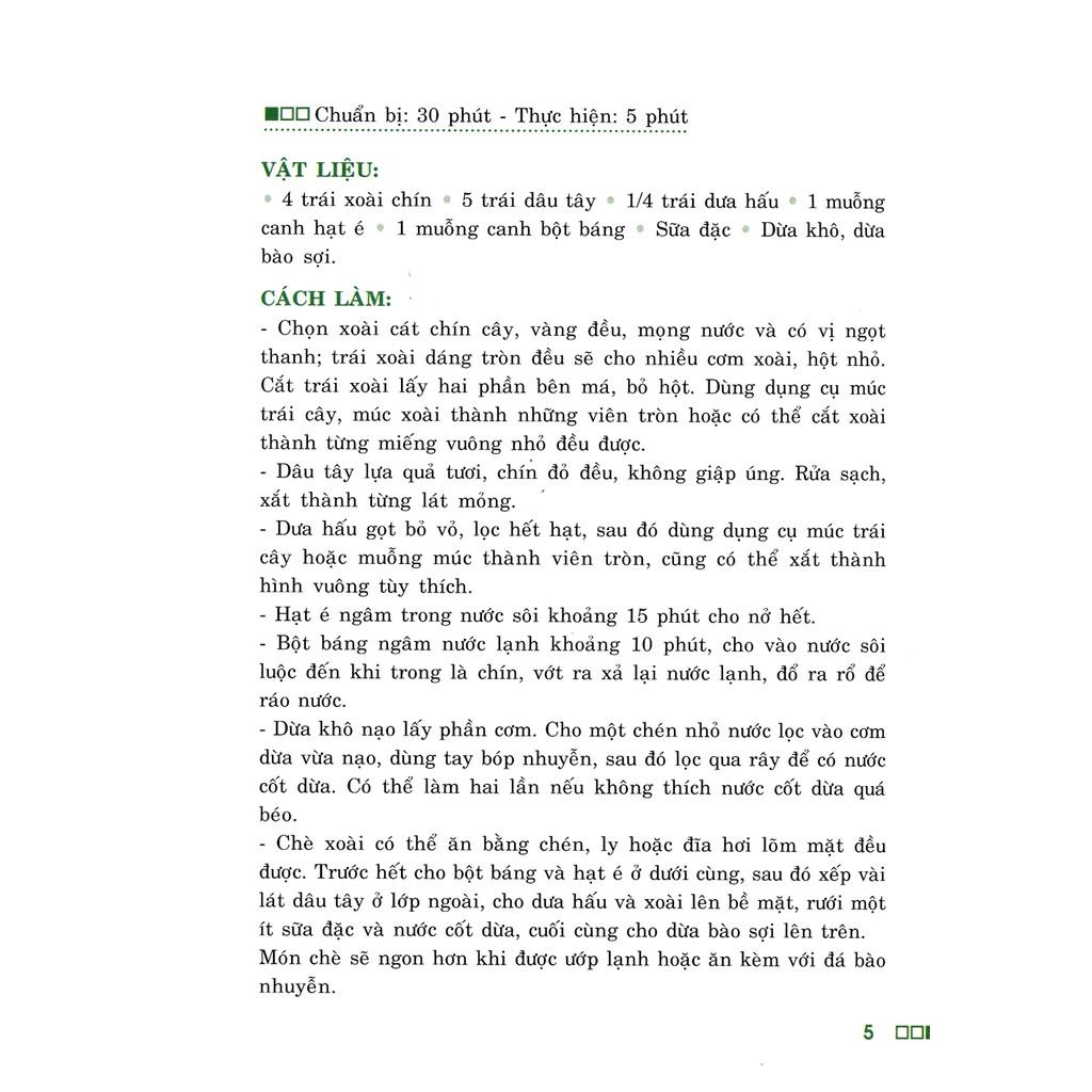 Ẩm thực Nam Bộ vốn được yêu thích bởi sự dân dã, nguyên liệu gần gũi dễ tìm nhưng hương vị thì tuyệt ngon. Cuốn sách hướng dẫn cách chế biến 62 món chè thơm ngon, thanh mát, giải nhiệt trong ngày hè: Thạch đậu đỏ, thanh long, trứng cút, nấm tuyết bí đỏ, sakê lá dứ Bạn hãy trổ tài vào bếp để chiêu đãi gia đình và những người thân yêu của mình nhé!