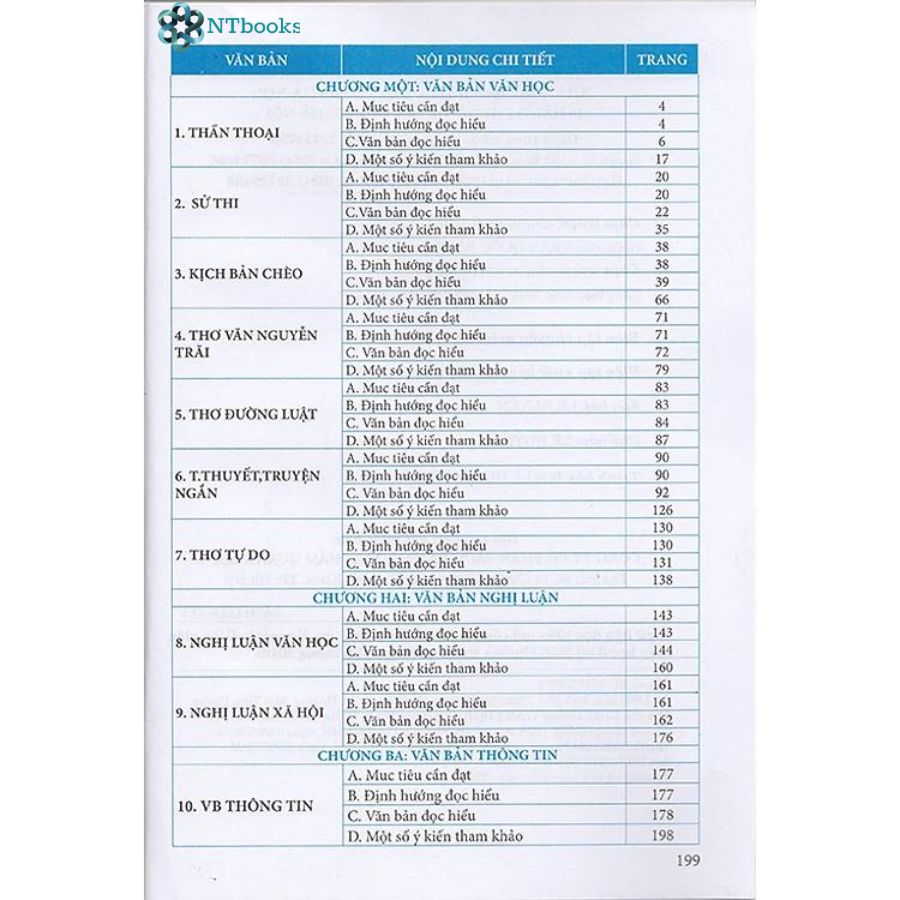 Cuốn sách gồm có 3 chương chính ứng với 3 kiểu văn bản và 10 đơn vị bài ứng với 10 thể loại (đọc hiểu) của chương trình Ngữ văn 11.