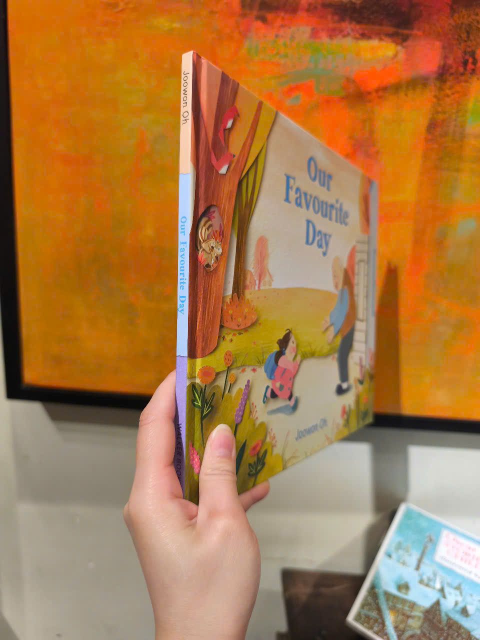Every morning Grandpa follows his normal routine. He drinks his tea, waters his plants, tidies up, and takes the bus into town. Grandpa enjoys his daily tasks, but there’s one day each week that is extra special. That’s the day he might visit the craft shop, get two orders of dumplings to go, and possibly pick some flowers he sees along the path. With its spare text and wonderfully warm watercolor and cut-paper illustrations just begging to be pored over, Joowon Oh’s tale of the singular love between a grandfather and granddaughter will nestle within the heart of every reader.