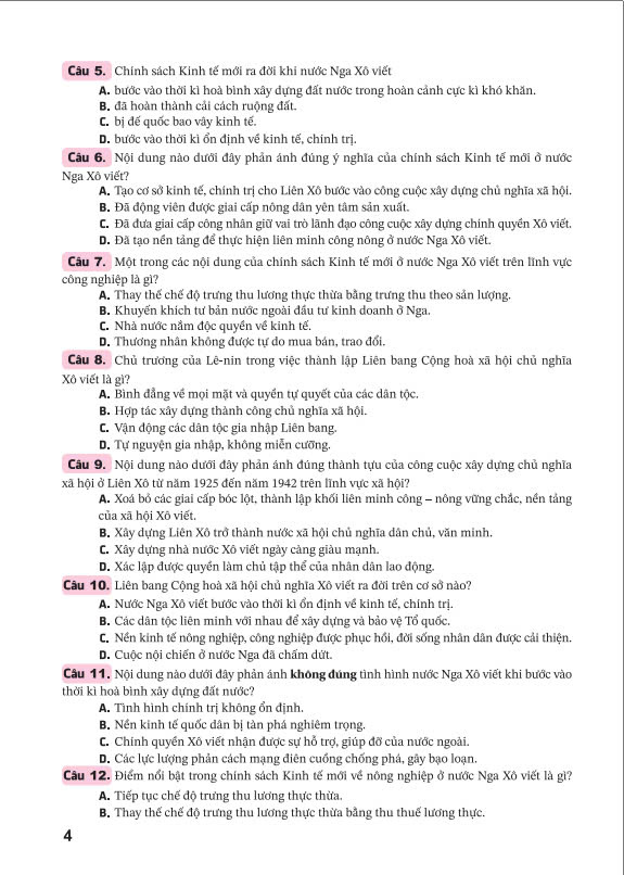 Từ nội dung cơ bản trong các sách giáo khoa; Cánh Diều, Chân trời sáng tạo, Kết nối tri thức với cuộc sống cũng như các tài liệu lịch sử liên quan, tác giả đã biên soạn hệ thống câu hỏi tự luận và trắc nghiệm theo hướng phát triển năng lực trong dạy và học môn Lịch sử lớp 9. Đặc biệt đối với câu hỏi trắc nghiệm, tác giả biên soạn kết hợp giữa câu hỏi trắc nghiệm nhiều phương án lựa chọn và trắc nghiệm đúng sai theo hướng dẫn mới nhất về kiểm tra, đánh giá của Bộ Giáo dục và Đào tạo.