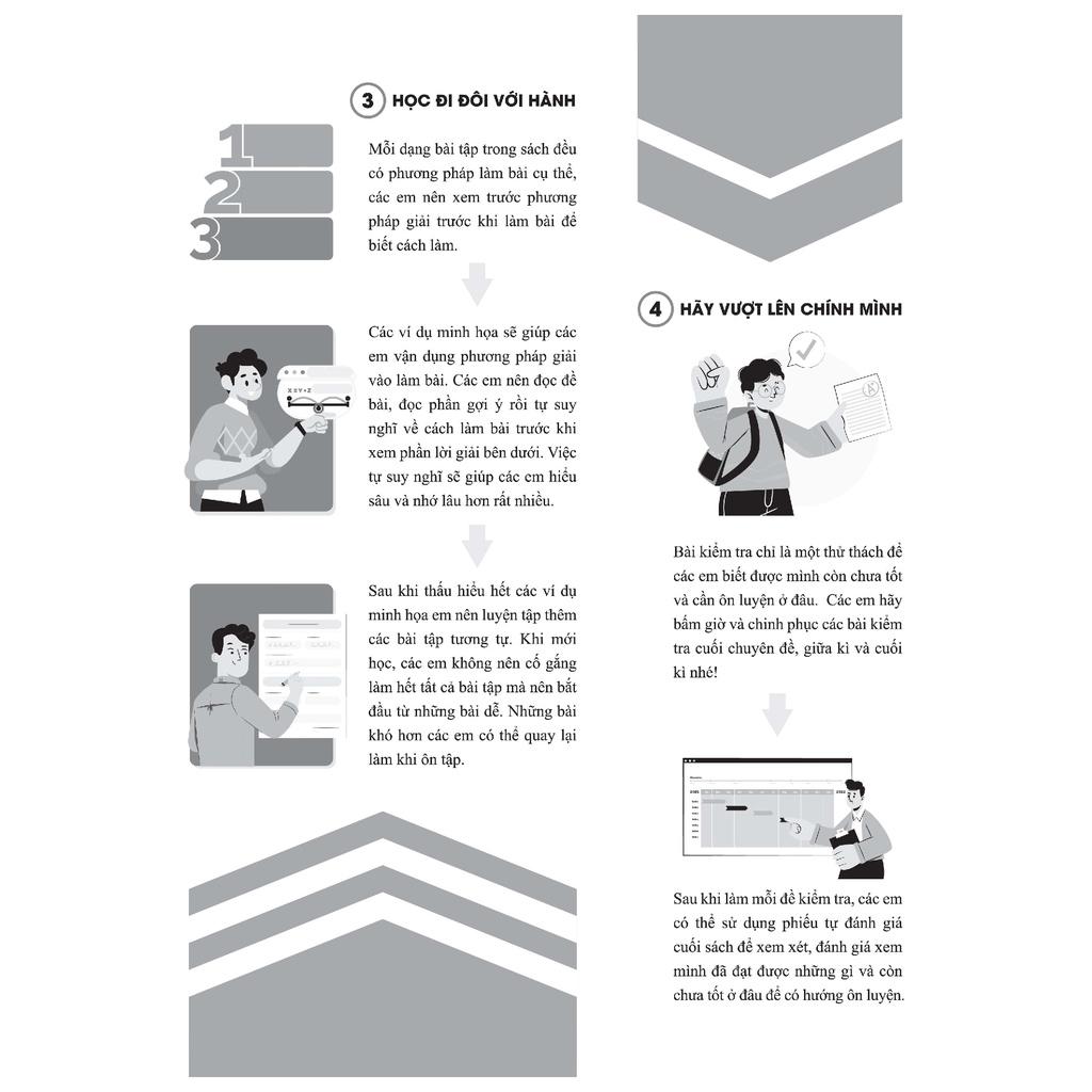 - Cuối mỗi chuyên đề đều có bài tập đánh giá để học sinh có cơ sở tự đánh giá mức độ hiểu bài và vận dụng kiến thức, kĩ năng đã học vào xử lí các dạng bài quan trọng;