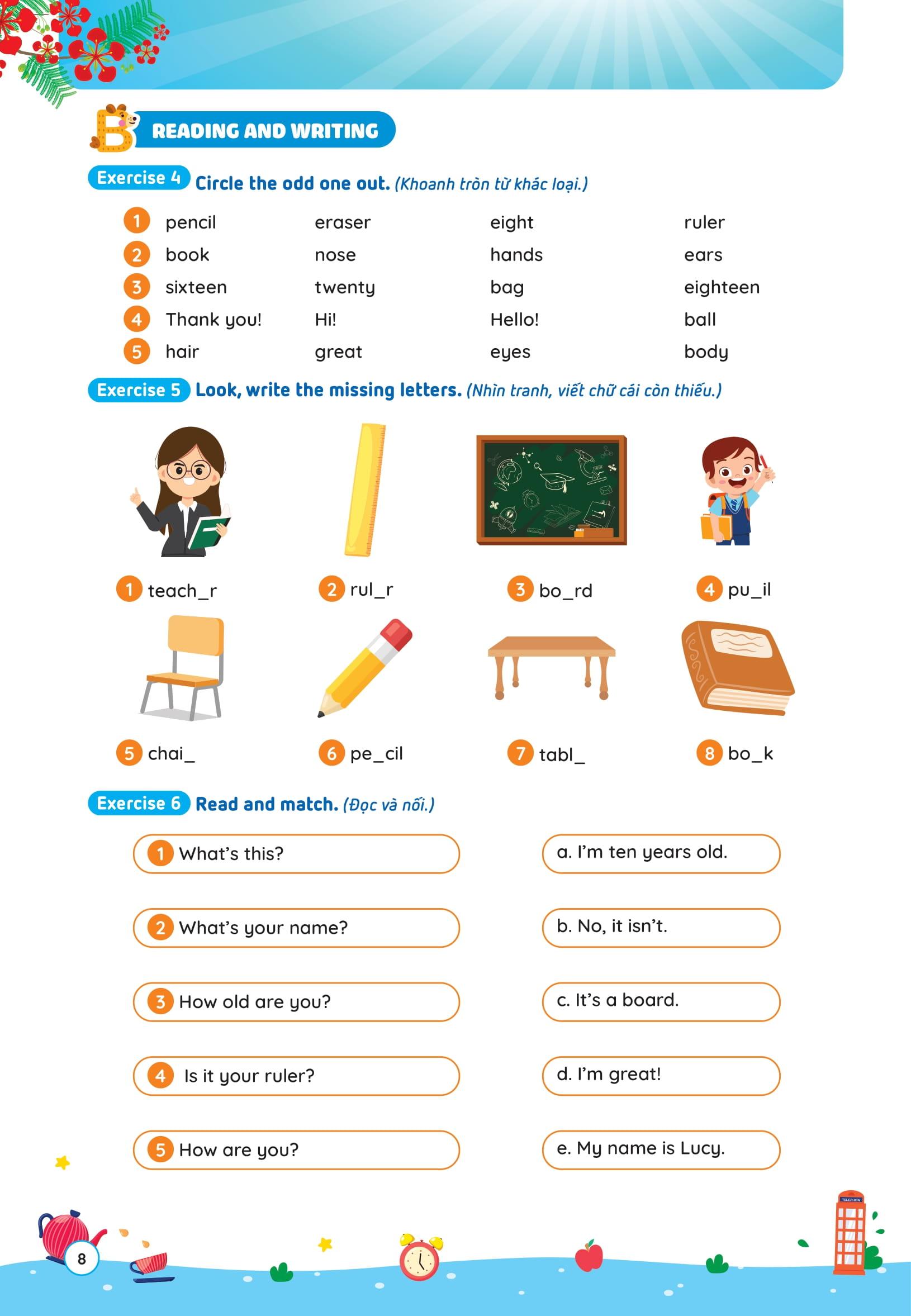 Là sách song ngữ ( Việt – Anh) giúp trẻ vừa học toán vừa ôn luyện Tiếng Anh, giúp trẻ ghi nhớ từ vựng, học Tiếng anh một cách tự nhiên chủ động. NHỮNG
