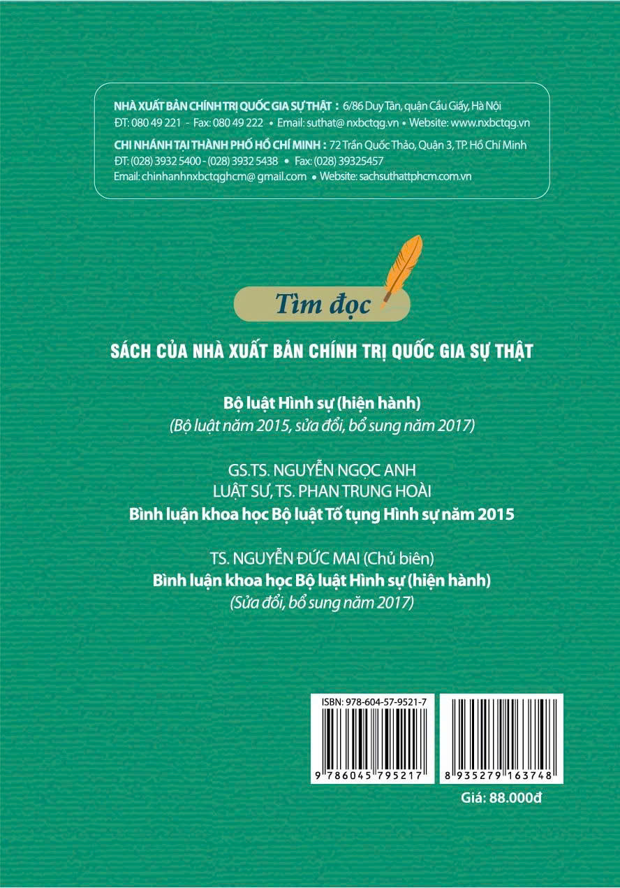 Các thông tư liên tịch của Tòa án nhân dân tối cao - Viện kiểm sát nhân dân tối cao - Bộ tư pháp - Bộ công an - Bộ quốc phòng về hình sự, tố tụng hình sự, dân sự, tố tụng dân sự, hành chính, kinh tế, thương mại, lao động, hôn nhân gia đình mới nhất Nhà xuất bản: Thông tin và Truyền thông Tác giả: TS: TRẦN VĂN HÀ (Biên soạn) Số trang: 552 trang Kích thước: 19x27 cm Hình thức bìa: Bìa mềm Năm xuất bản: Tháng 04/2023 Lời giới thiệu: Thời gian qua, Tòa án nhân dân tối cao, Viện kiểm sát nhân dân tối cao, Bộ Công an, Bộ Tư pháp, Bộ Quốc phòng, đã ban hành nhiều Thông tư liên tịch hướng dẫn về hình sự, tố tụng hình sự, dân sự, tố tụng dân sự, hành chính, tố tụng hành chính, lao động, kinh tế, thương mại, hôn nhân gia đình. Nhằm kịp thời thông tin đầy đủ, chính xác và có hệ thống các Thông tư liên tịch nêu trên, Tiến sĩ Trần Văn Hà công tác tại Vụ Pháp chế và Quản lý Khoa học - Tòa án nhân dân tối cao đã biên soạn cuốn sách: CÁC THÔNG TƯ LIÊN TỊCH CỦA TÒA ÁN NHÂN DÂN TỐI CAO - VIỆN KIỂM SÁT NHÂN DÂN TỐI CAO - BỘ TƯ PHÁP - BỘ CÔNG AN - BỘ QUỐC PHÒNG VỀ HÌNH SỰ, TỐ TỤNG HÌNH SỰ, DÂN SỰ, TỐ TỤNG DÂN SỰ, HÀNH CHÍNH, KINH TẾ, THƯƠNG MẠI, LAO ĐỘNG, HÔN NHÂN GIA ĐÌNH MỚI NHẤT Nội dung cuốn sách gồm các phần chính sau đây: Phần thứ nhất: Các Thông tư liên tịch của Tòa án nhân dân tối cao - Viện Kiểm sát nhân dân tối cao - Bộ Tư pháp - Bộ Công an - Bộ Quốc phòng về hình sự Phần thứ hai: Các Thông tư liên tịch của Tòa án nhân dân tối cao - Viện Kiểm sát nhân dân tối cao - Bộ Tư pháp - Bộ Công an - Bộ Quốc phòng về tố tụng hình sự Phần thứ ba: Các Thông tư liên tịch của Tòa án nhân dân tối cao - Viện Kiểm sát nhân dân tối cao - Bộ Tư pháp - Bộ Công an - Bộ Quốc phòng về dân sự, hành chính Phần thứ tư: Các Thông tư liên tịch của Tòa án nhân dân tối cao - Viện Kiểm sát nhân dân tối cao - Bộ Tư pháp - Bộ Công an - Bộ Quốc phòng về tố tụng dân sự, tố tụng hành chính Phần thứ năm: Các Thông tư liên tịch của Tòa án nhân dân tối cao - Viện Kiểm sát nhân dân tối cao - Bộ Tư pháp - Bộ Công an - Bộ Quốc phòng về kinh tế, thương mại, lao động, hôn nhân gia đình Hy vọng rằng đây sẽ là tài liệu hữu ích để bạn đọc, đặc biệt là các thẩm phán, hội thẩm, kiểm sát viên, điều tra viên, các học viên tư pháp, luật sư và những người làm công tác pháp luật nghiên cứu, áp dụng trong thực tiễn xét xử. Trân trọng giới thiệu cuốn sách đến bạn đọc.