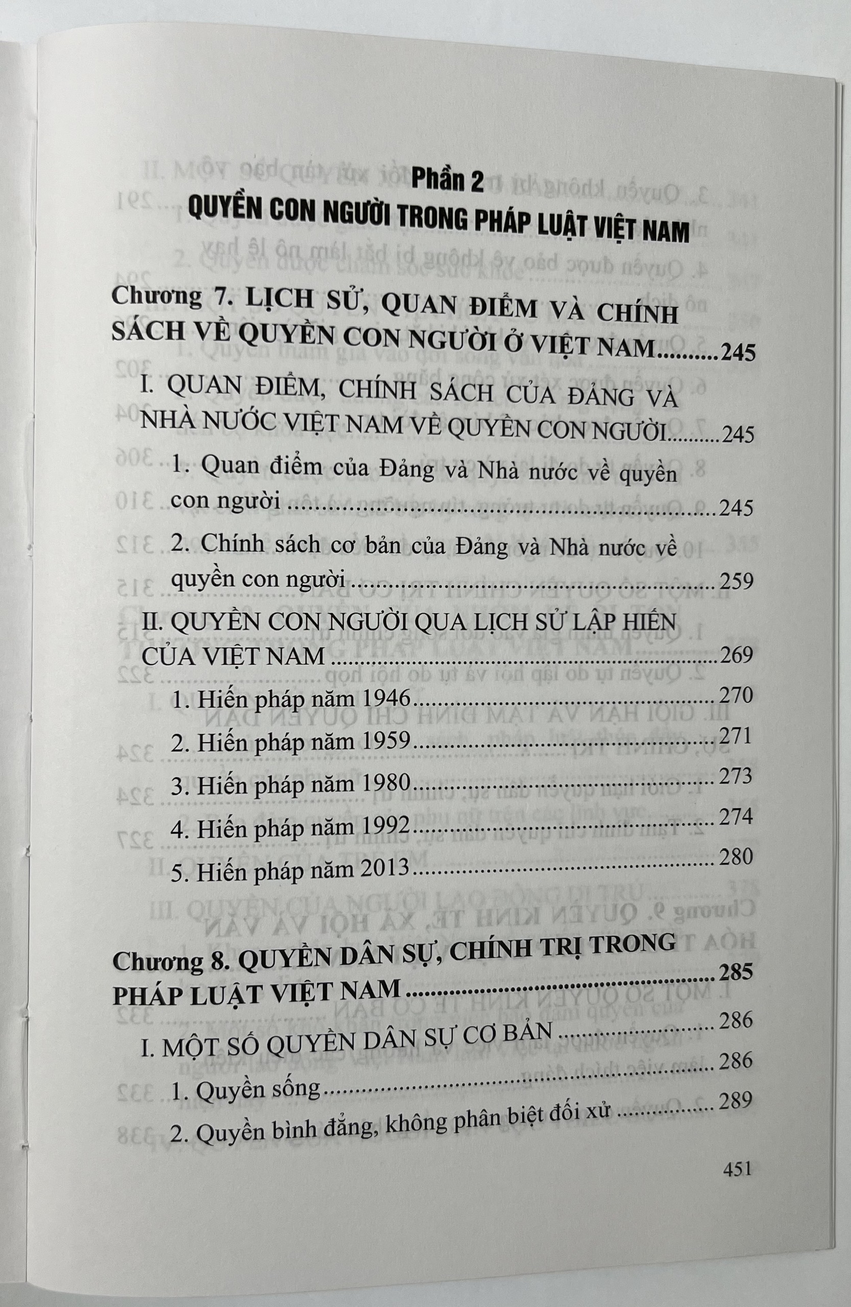 Cuốn sách “Quyền con người trong pháp luật quốc tế và pháp luật Việt Nam” được biên soạn bởi tập thế tác giả là những chuyên gia có kinh nghiệm giảng dạy, nghiên cứu về quyền con người. Cuốn sách phân tích tổng thể những vấn đề lý luận và thực tiễn về quyền con người và bảo đảm quyền con người cả dưới góc độ quốc tế và quốc gia; nghiên cứu hệ thống pháp luật Việt Nam về quyền con người và cơ chế bảo đảm quyền con người ở Việt Nam. Hy vọng cuốn sách này sẽ đáp ứng được nhu cầu giảng dạy, học tập và nghiên cứu vệ quyền con người của giảng viên, sinh viên và các bạn đọc quan tâm. Tập thế tác giả mong nhận được những ý kiến góp ý của bạn đọc để cuốn sách được hoàn thiện hơn.