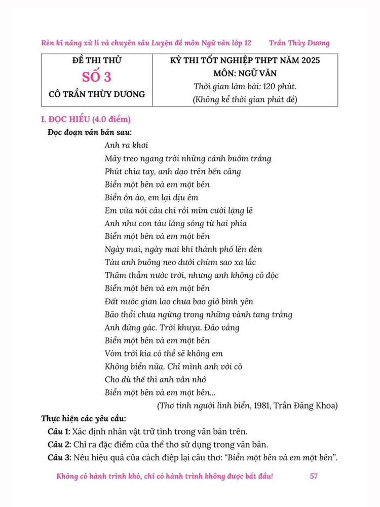 Sách - Rèn kỹ năng xử lí và Chuyên sâu Luyện đề Môn Ngữ văn - Thi Tốt nghiệp THPT Chương trình GDPT 2018 (Cô Trần Thùy Dương) Tác giả: Trần Thùy Dương Nhà xuất