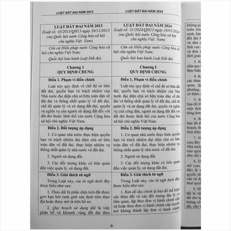 Phần thứ nhất: So sánh Luật Đất đai năm 2013 – năm 2024