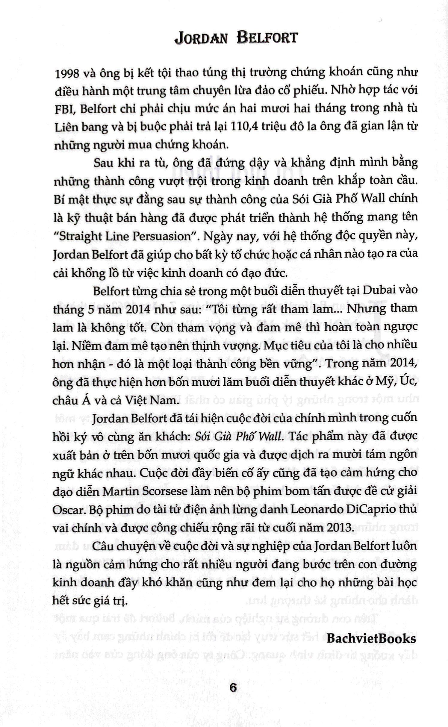 Jordan Belfort là chuyên gia tư vấn cho hơn 50 công ty và viết bài cho nhiều báo, tạp chí uy tín trên thế giới, trong đó có The New York Times, The Wall Street Journal, The Los Angeles Times, The London Times, The Herald Tribune, Le Monde, Corriere della Serra, Forbes, Business Week, Paris Match, Rolling Stone.