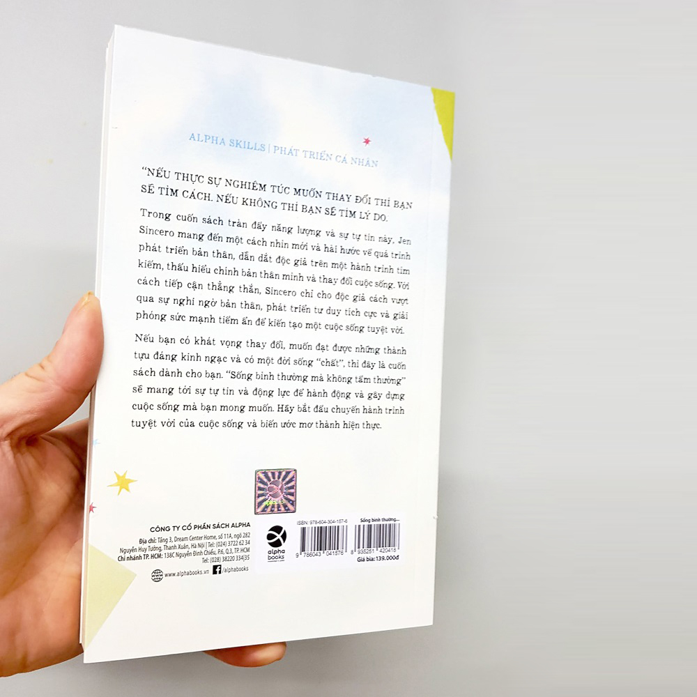 Mua tại TiktokSống Bình Thường Mà Không Tầm Thường Cuốn sách là phiên bản bìa mới của cuốn Bạn Thật Bá Đạo. Cuốn sách dành cho những người tuyệt vọng, muốn cải thiện cuộc đời nhưng không muốn phạm pháp. Trong cuốn sách mới mẻ và đầy tính giải trí này, nhà văn và huấn luyện viên Jen Sincero đã mang tới 27 chương tràn đầy những câu chuyện hài hước và khơi gợi cảm hứng, những lời khuyên thông thái, các bài tập đơn giản, thỉnh thoảng có những câu chửi thề, giúp bạn có thể: