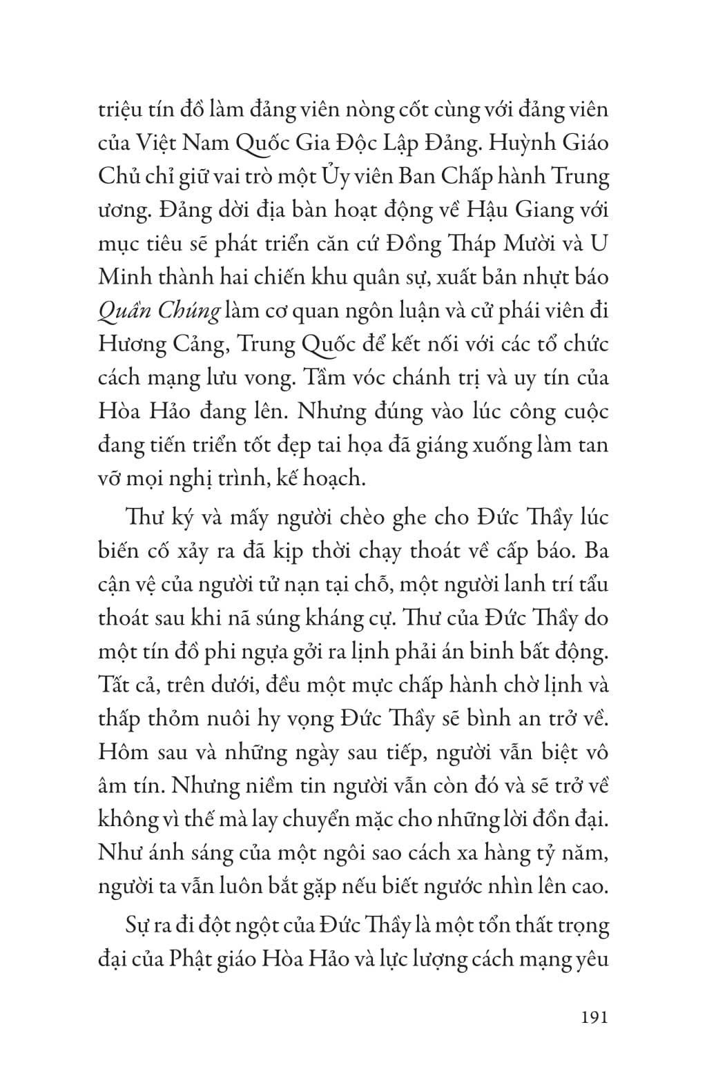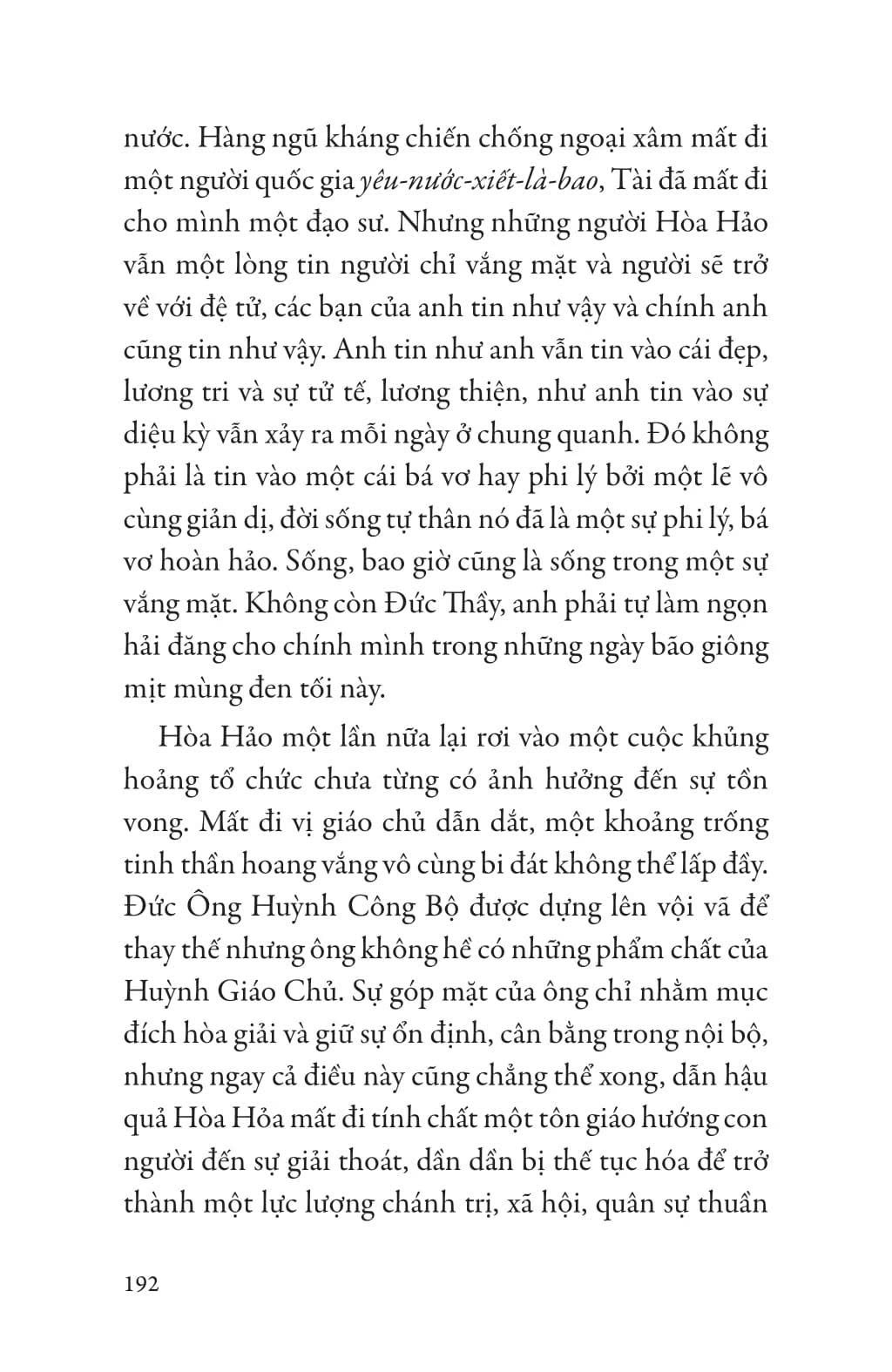 Một tiểu thuyết lịch sử giàu chất phong tục, một áng văn với ngôn ngữ đặc sắc về đồng bằng sông Cửu Long và số phận Phật giáo Hoà Hảo, ở vào thời điểm lịch sử đặc biệt - bình minh của nước Việt Nam hiện đại. Ở đó có hoạt động của các lực lượng yêu nước kháng Pháp-Nhật, những diễn biến đời sống của đất và người Nam Bộ một thuở, và trên tất cả là những phận người nổi nênh trong vòng xoáy lịch sử.