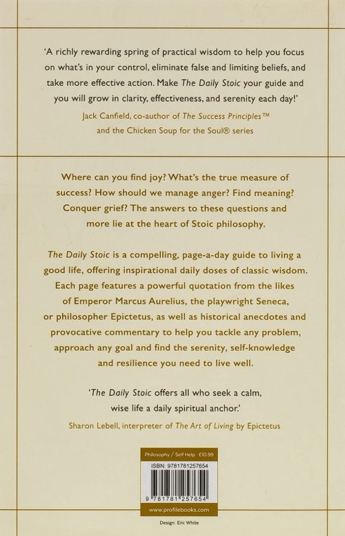 The Daily Stoic is a wise, calming, page-a-day guide to living a good life, offering inspirational daily doses of classic wisdom. Each page features a powerful quotation from the likes of Emperor Marcus Aurelius, the playwright Seneca, or philosopher Epictetus, as well as historical anecdotes and thought-provoking commentary to help you tackle any problem, approach any goal and find the serenity, self-knowledge and resilience you need to live well.