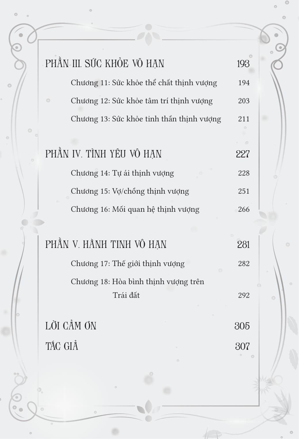 Thông qua những lời khẳng định tích cực và bài thiền được thiết kế chuyên sâu, cuốn sách dẫn dắt bạn thay đổi tư duy từ gốc rễ, xóa bỏ những niềm tin sai lầm rằng bạn không xứng đáng với sự giàu có. Bạn sẽ học cách kết nối với nguồn năng lượng dồi dào của vũ trụ, mở ra con đường thu hút thịnh vượng ở mọi khía cạnh: tài chính, tinh thần, cảm xúc và môi trường sống.