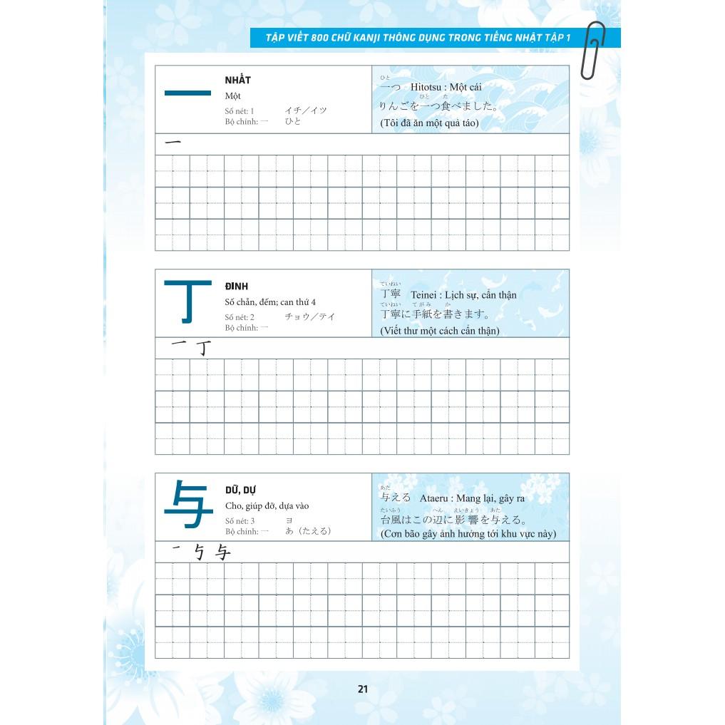 15 Phút Luyện Kanji Mỗi Ngày - Vol 1 Tập 1 này dành cho các học viên Sơ cấp - Sơ trung cấp tiếng Nhật. Hai tập sách cung cấp 555 chữ Hán cơ sở