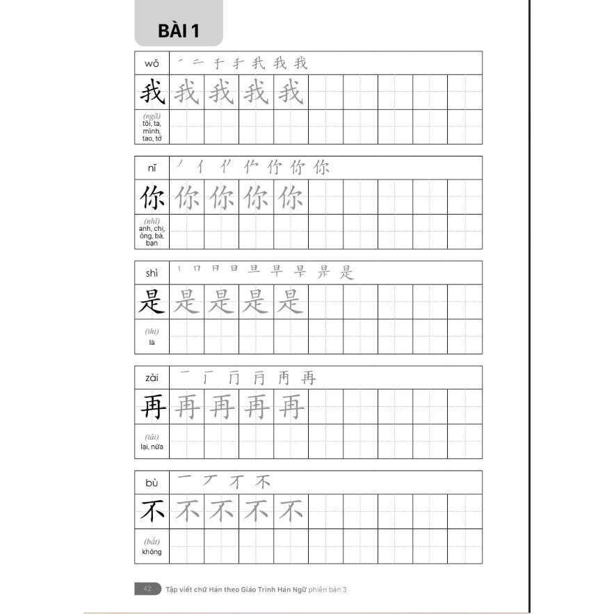 “Tập Viết Chữ Hán Theo Giáo Trình Hán Ngữ Phiên Bản 3” là tài liệu bổ trợ cho cuốn sách Giáo trình Hán ngữ phiên bản 3. Sách được biên soạn giúp người học nhanh chóng nắm vững về các bộ phận, kết cấu của chữ Hán, các nét chữ Hán, biến thể và các quy tắc viết chữ Hán. Tất cả những kiến thức này được minh họa bằng những hình ảnh và ví dụ cụ thể giúp người học dễ dàng áp dụng vào thực tế.