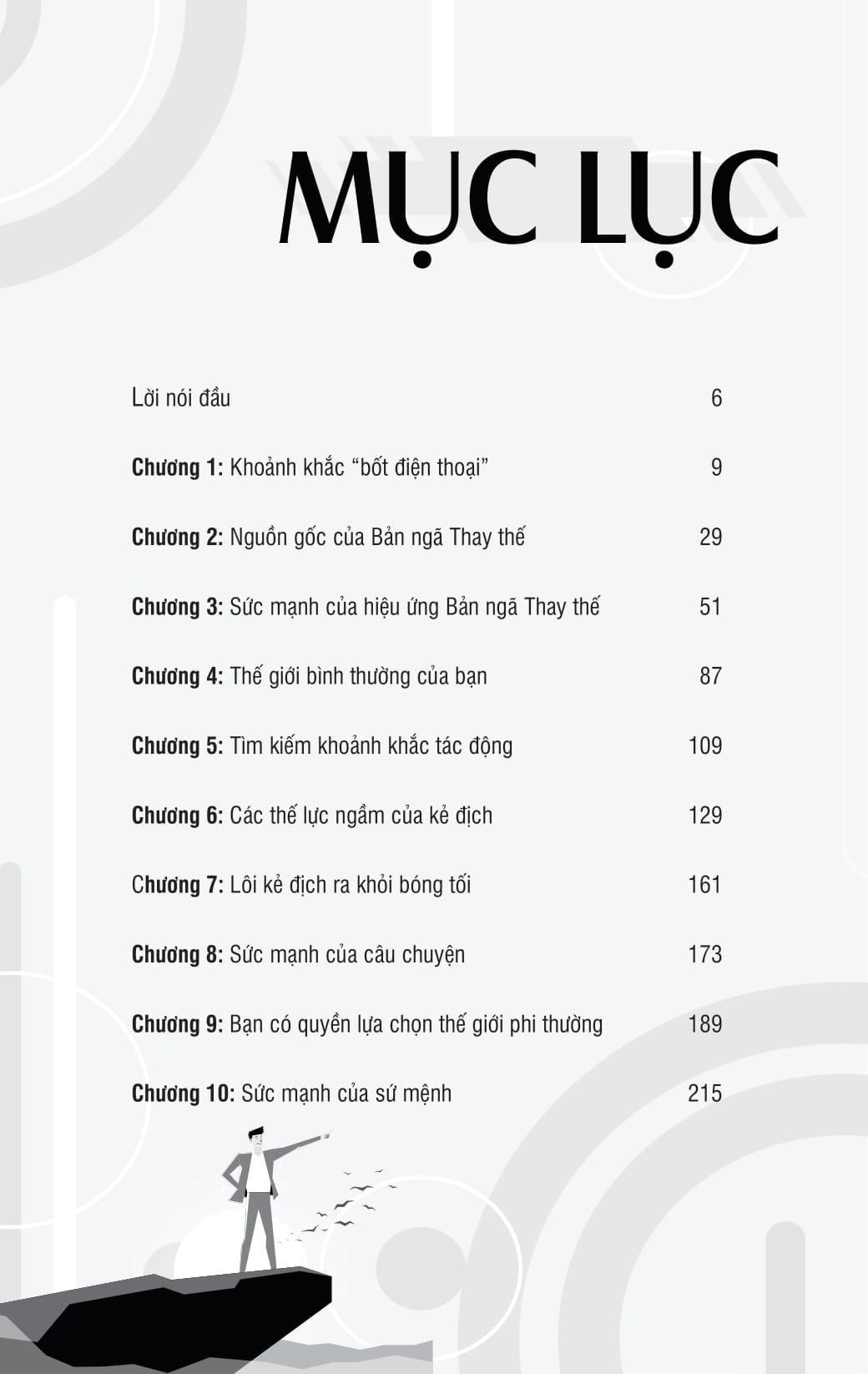 The Alter Ego Effect - Thức Tỉnh Bản Ngã Trong mỗi người đều tồn tại 2 bản ngã: một là “tôi” thường ngày với sự sợ hãi và do dự; và một “tôi” mạnh mẽ hơn, quyết đoán hơn, có khả năng tỏa sáng trong những khoảnh khắc quan trọng. Tuy nhiên, hầu hết chúng ta đều để bản ngã yếu thế kiểm soát. Trongcuốn sách “Thức tỉnh bản ngã”, tác giả Todd Herman - nhà huấn luyện hiệu suất đã đồng hành cùng hàng ngàn vận động viên, CEO và nghệ sĩ - tiết lộ một chiến lược tâm lý độc đáo: tạo ra alter ego (bản ngã thay thế). Đây là phương pháp tâm lý học đã được chứng minh hiệu quả, giúp chúng ta vượt qua sự nghi ngờ bản thân, những suy nghĩ tiêu cực và bất an đang kìm hãm năng lực, qua đó giúp mỗi cá nhân trở thành phiên bản tốt nhất của chính m.ình. Cuốn sách được tổng hợp dựa trên dữ liệu thu thập từ hơn 75.000 chủ doanh nghiệp và những chuyên gia trong các lĩnh vực đã áp dụng chiến lược alter go để chạm tới thành công. Không chỉ là một cuốn sách về tư duy tích cực “Thức tỉnh bản ngã” là một phương pháp thực chiến để bạn khai mở tiềm năng bị chôn giấu, đối diện với áp lực và tỏa sáng trong bất kỳ “sân chơi” nào của cuộc đời - từ công việc, thể thao đến nghệ thuật. Đọc xong cuốn sách này, bạn sẽ có thể: