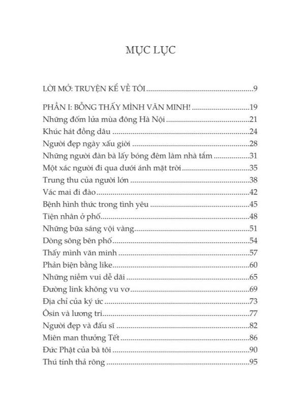 THÔNG TIN PHÁT HÀNH Tác giả: Phạm Trung Tuyến Nhà xuất bản: Hội nhà văn Số trang: 228 Kích thước: 14x20.5 cm Ngày phát hành: 12-2021 GIỚI THIỆU SÁCH Mỗi ngày ta sống xảy ra vô số điều hỗn tạp. Ta thương xót một chốc với điều này, phẫn nộ một lát với điều kia để cảm giác mình không bị lạc hậu thông tin, rồi quên. Nhưng tác giả cuốn sách này chọn nhìn sâu vào căn nguyên và lý giải sắc sảo những câu chuyện của đời sống đương đại. Một người lái taxi gây tai nạn hay là tội ác sinh ra từ nỗi sợ? Hành vi lộng hành của một ông quan hay sự tha hóa nhận thức về quyền lực nhà nước? Thói quen phản biện bằng like và share có phải là chỉ dấu cho sự hời hợt và thiếu trách nhiệm? Lũ học trò đồng thuận với hành vi đánh đập của cô giáo phải chăng bởi bạo lực đã được tập nhiễm chốn học đường? Và sự tiện thể trong lối sống phải chăng đã biến chúng ta thành những “tiện nhân ở phố”? Phẫn nộ, giễu cợt, nhưng lại đầy xót xa, nhân văn và giàu tinh thần trách nhiệm, cuốn sách dù được gợi ý từ những câu chuyện cụ thể luôn mở ra sâu rộng hơn, để ta cùng đọc và suy ngẫm. TÁC GIẢ: Phạm Trung Tuyến Nhà báo tại VOV, phó giám đốc kênh VOV Giao thông. Bé đi học, lớn đi họp, thỉnh thoảng yêu đương, lấy vợ vài lần, chủ yếu là nuôi con. Ngoài làm báo còn chăm chỉ nấu rượu bán để có thêm thu nhập.