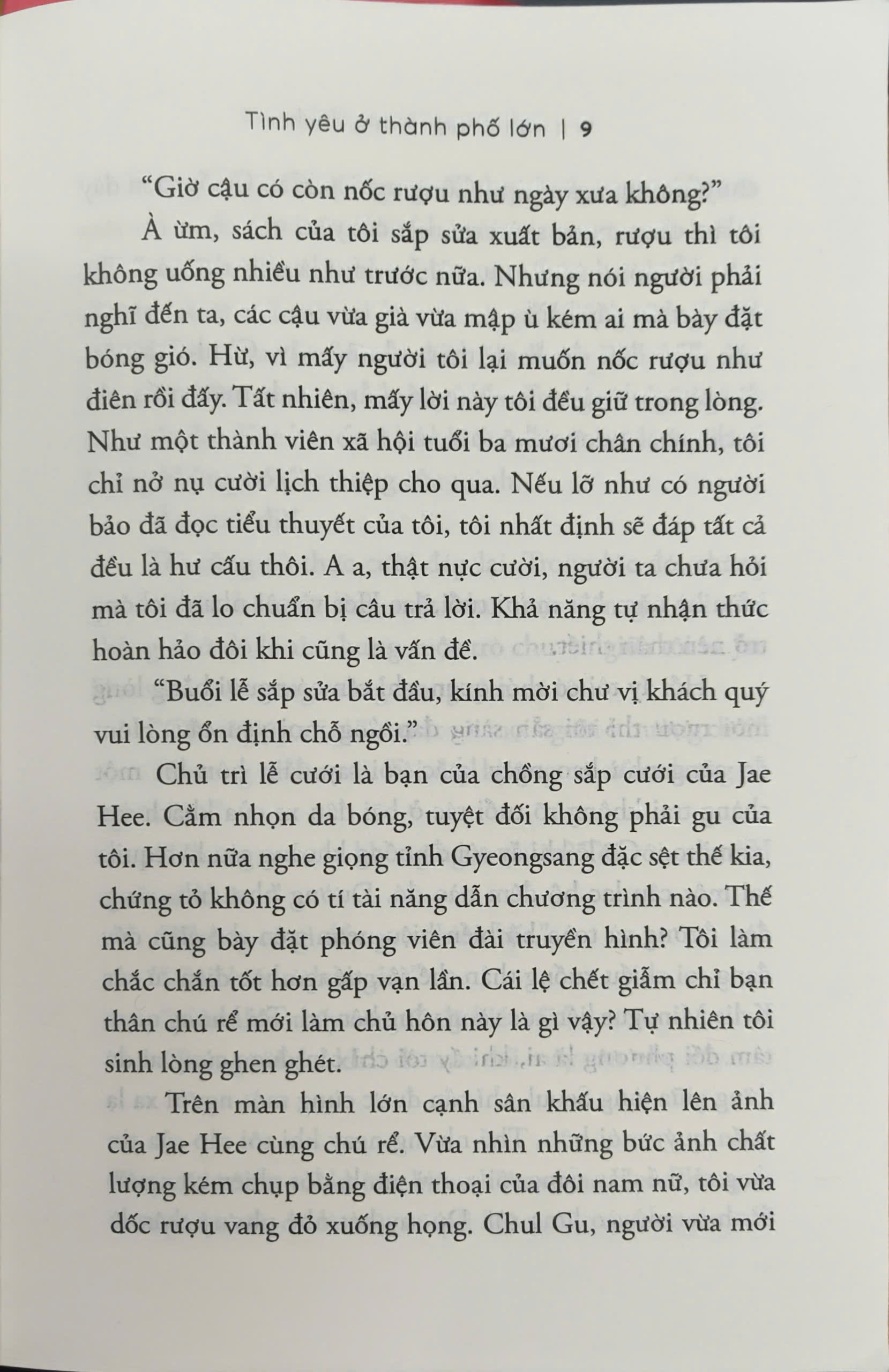 Tình yêu ở thành phố lớn là hành trình khám phá cuộc sống đồng tính cũng như nỗi cô đơn thế hệ của lớp trẻ Hàn Quốc hiện đại. Một cuốn tiểu thuyết tràn đầy năng lượng, hài hước và cảm động, mô tả trọn vẹn cả thế giới về đêm lấp lánh của Seoul lẫn buổi sáng mờ mịt sau đó của thành phố lớn cô liêu.