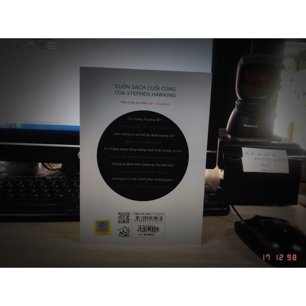 Mua tại TiktokTác giả: Stephen Hawking Dịch giả: Nguyễn Văn Liễn Khổ sách: 14.5x20.5cm Số trang: 204 Giá bán: 90,000 VNĐ NXB; NXB Trẻ NPH: NXB Trẻ In lần thứ 2 năm 2020 Giới thiệu tóm tắt tác phẩm: Các nhà khoa học, các chuyên gia kỹ thuật, các doanh nhân tầm cỡ, các nhà chính trị hàng đầu và công chúng bình dân thường hỏi Stephen Hawking xem ông nghĩ gì đối với “các câu hỏi lớn” của thời đại, những câu hỏi mà phần lớn các nhà khoa học khác đôi khi lảng tránh. Stephen đã tạo ra một kho lưu trữ riêng các câu trả lời của mình, dưới dạng các bài nói, phỏng vấn và bài viết. Cuốn sách này được lấy ra từ kho lưu trữ cá nhân ấy của Stephen và hình thành trong khoảng thời gian ông ra đi.