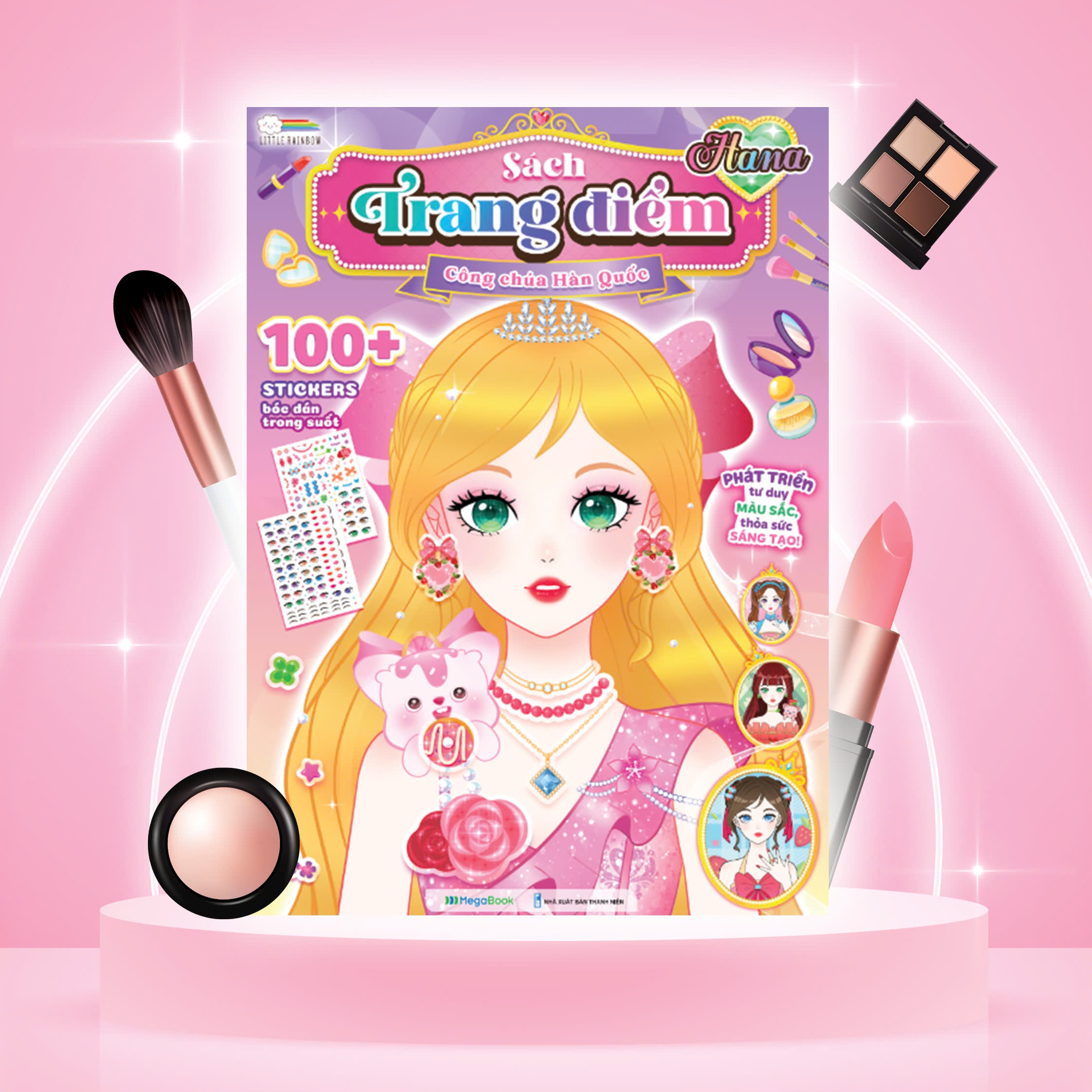 Megabook  phát hành Sách trang điểm có Sticker hình dán trong suốt, giúp các bé có thể chơi bóc dán trang điểm cho các nàng công chúa Hàn Quốc một cách chân thực, đẹp nhất. Các bé có thể thỏa sức sáng tạo với 24 hình công chúa.