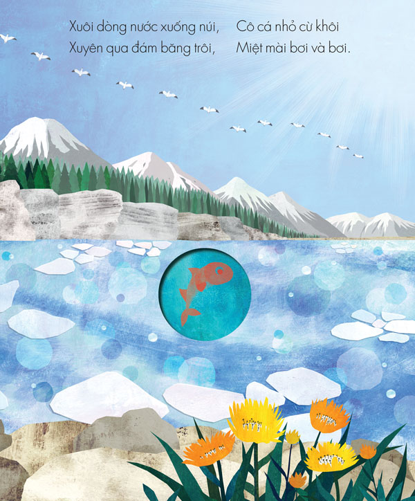 Theo chân cô cá nhỏ trong cuộc hành trình vĩ đại để khám vào những điều chưa biết, từ sông cho đến biển rộng. Cuốn sách đục lỗ này là một hành trình tuyệt đẹp, sẽ mang đến một trải nghiệm đọc vô cùng thú vị cho các bé khi được cảm nhận cô cá nhỏ bơi trên từng trang sách đầy màu sắc.