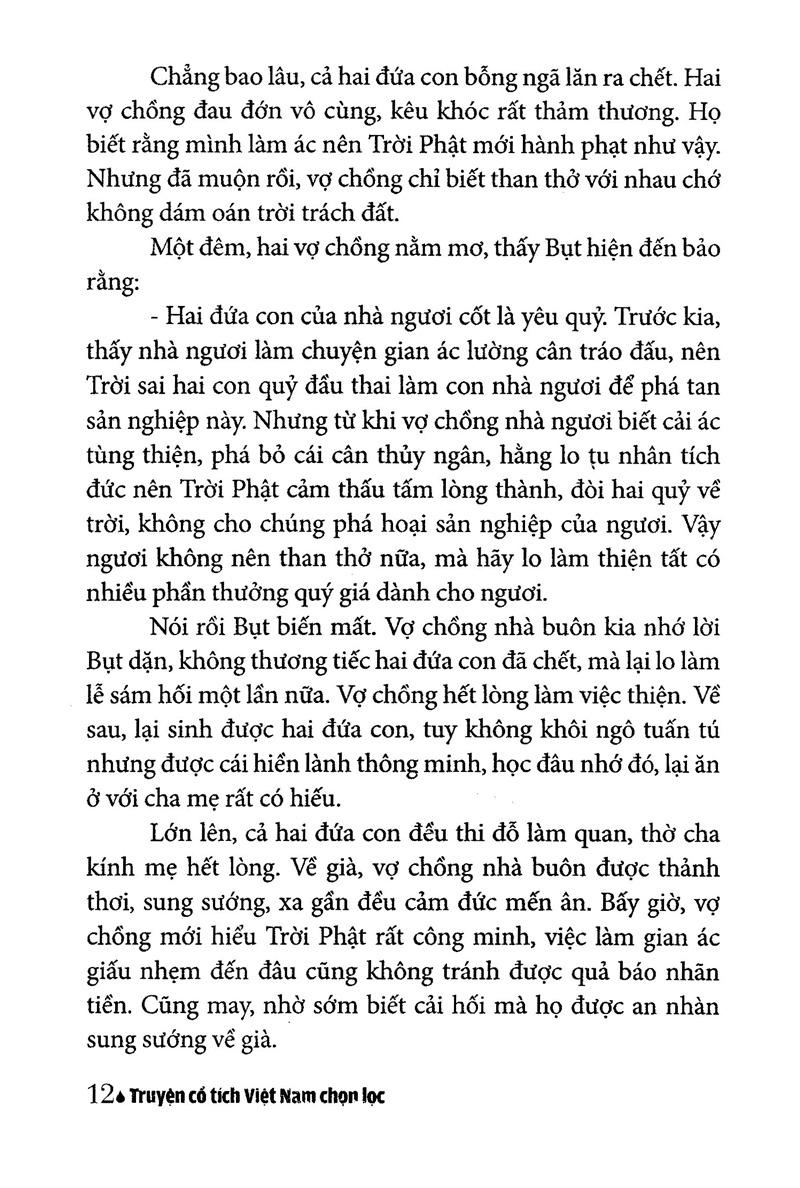 Bộ sách Truyện Cổ Tích Việt Nam Chọn Lọc sẽ đưa các em trở về thế giới cổ tích và gặp lại các nhân vật quen thuộc như: Thạch Sanh, cô Tấm, Thánh Gióng, chú Cuội, Sọ Dừa... Qua những câu chuyện, các em sẽ biết được thêm nhiều sự tích thú vị về con người, sự vật, sự việc thường xuất hiện trong các áng thơ văn của dân tộc ta. Tất cả sẽ làm giàu thêm trí tưởng tượng vốn rất phong phú của các em, bồi dưỡng tâm hồn các em và giúp các em thêm yêu, thêm tin vào cuộc sống. Đặc biệt, bộ sách với những hình ảnh minh họa sinh động, bắt mắt cùng lời kể trong sáng phù hợp với tâm hồn tuổi thơ.