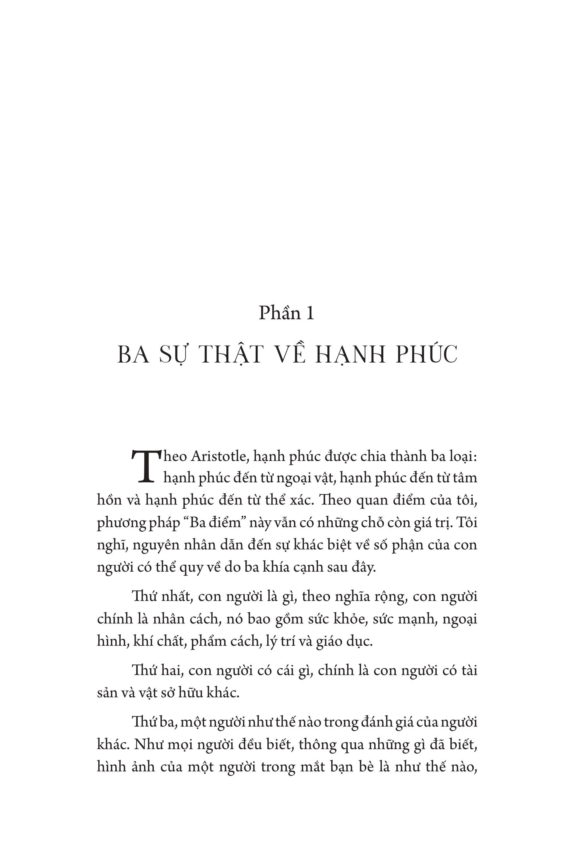 Cách an toàn nhất để cuộc sống thoát khỏi đau khổ là đừng mong chờ hạnh phúc. Cũng giống như việc đừng hy vọng để khỏi phải thất vọng! Merck, người bạn thời trẻ của triết gia Goethe, đã nhận thức được sự thật này khi ông viết: Cái cách tồi tệ mà con người đòi hỏi về hạnh phúc – và theo thước đo lường ứng với mong muốn của họ – đã phá hỏng mọi thứ trong cuộc đời này. Con người sẽ tiến bộ nếu thoát khỏi đòi hỏi yêu sách này và không mong muốn gì ngoài những gì anh ta nhìn thấy trước mắt.