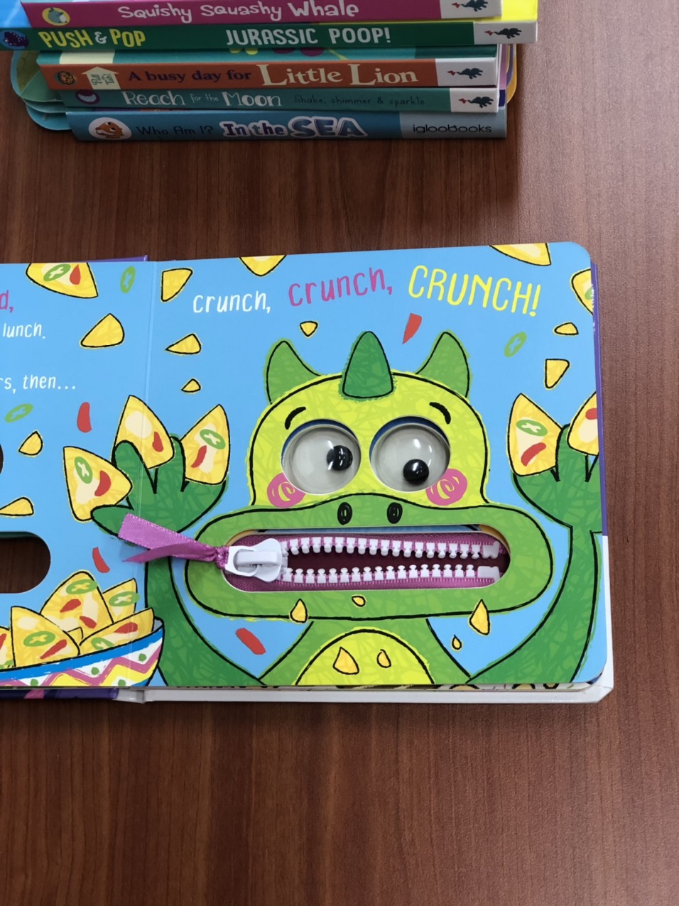 Mua tại TiktokHere comes Snackasaurus, he REALLY needs to eat! Sharing pizza with his his favorite treat!The dinosaurs are hungry and it's time to eat! Shake the wobbly eyes and open and close the zipper mouth as the hungry dinosaurs chomp their way through this rhyming story book! Die-cuts on each page reveal the wobbly eyes and zipper mouths, and the fun story features lots of noisy words for readers to shout out on each page.