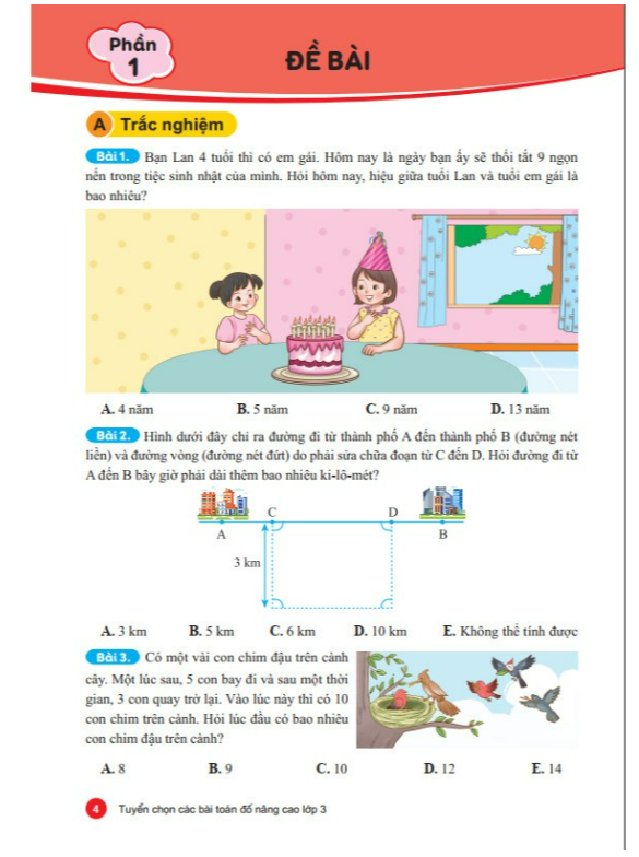 – Phần một bao gồm hệ thống các câu hỏi trắc nghiệm và tự luận. Bên cạnh các dạng toán cơ bản, bám sát chương trình giáo dục phổ thông 2018, các em còn được tiếp cận rất nhiều dạng bài phong phú và hấp dẫn, thường xuất hiện trong các kì thi Toán quốc tế ở bậc Tiểu học. Chúng tôi sắp xếp một cách tương đối câu hỏi trong cuốn sách theo thứ tự từ cơ bản, gợi mở đến nâng cao để luôn khuyến khích học sinh tiếp tục vượt qua những thử thách ở mức độ cao hơn mỗi khi hoàn thành được một nhiệm vụ trước đó. Tuy nhiên, các em không nhất thiết phải làm theo thứ tự, mà có thể chọn một cách sắp xếp phù hợp với
