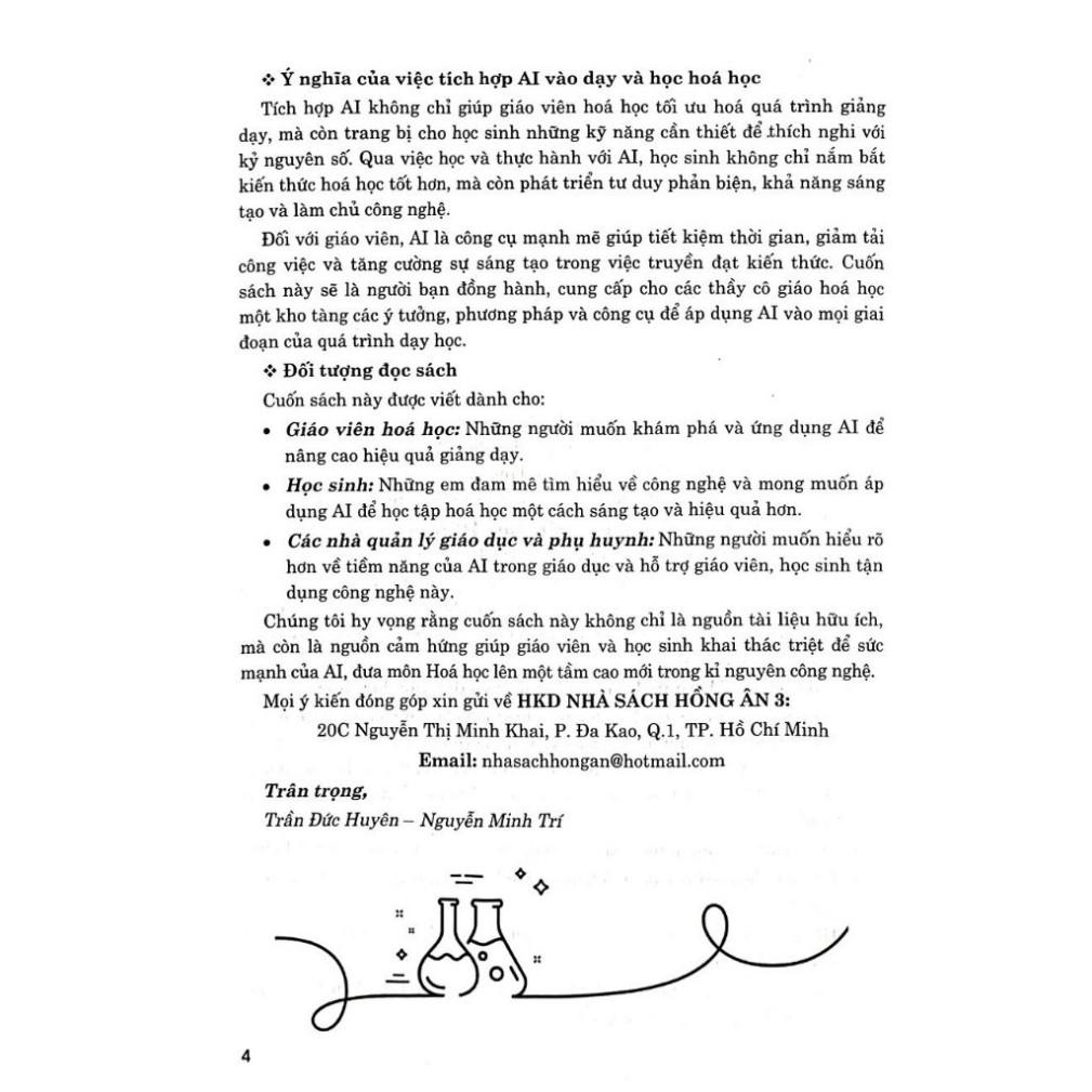 Trong kỉ nguyên số, khi công nghệ không ngừng phát triển, giáo dục cũng đang được tái định hình để phù hợp với những thách thức và cơ hội mới. “Giáo dục biến đổi cuộc sống, và AI mở ra tiềm năng vô hạn cho mỗi người học.” – lời trích dẫn đầy cảm hứng của Andrew Ng, một chuyên gia toàn cầu về AI và giáo dục, nhấn mạnh rằng con đường tri thức không chỉ là hành trình của sự truyền đạt kiến thức mà còn là quá trình khai phá, phát triển những khả năng tiềm ẩn của mỗi cá nhân. Cuốn sách này ra đời nhằm cung cấp cho các giáo viên và học sinh môn Khoa học Tự nhiên (KHTN) một hướng đi mới, nơi công nghệ AI không chỉ hỗ trợ mà còn đồng hành cùng con người trong quá trình dạy và học.