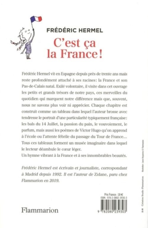 Frédéric Hermel vit en Espagne depuis près de trente ans mais reste profondément attaché à ses racines : la France et son Pas-de-Calais natal. Exilé volontaire, il visite dans cet ouvrage les petits et grands trésors de notre pays, ces merveilles du quotidien qui marquent notre différence mais que, souvent, nous ne savons plus voir ni apprécier. Chaque chapitre est construit comme un tableau dans lequel l'auteur brosse avec tendresse le portrait d'une particularité typiquement française : les bals du 14 Juillet, la passion du pain, le vouvoiement, le parfum, mais aussi les poèmes de Victor Hugo qu'on apprend à l'école ou l'attente fébrile du passage du Tour de F