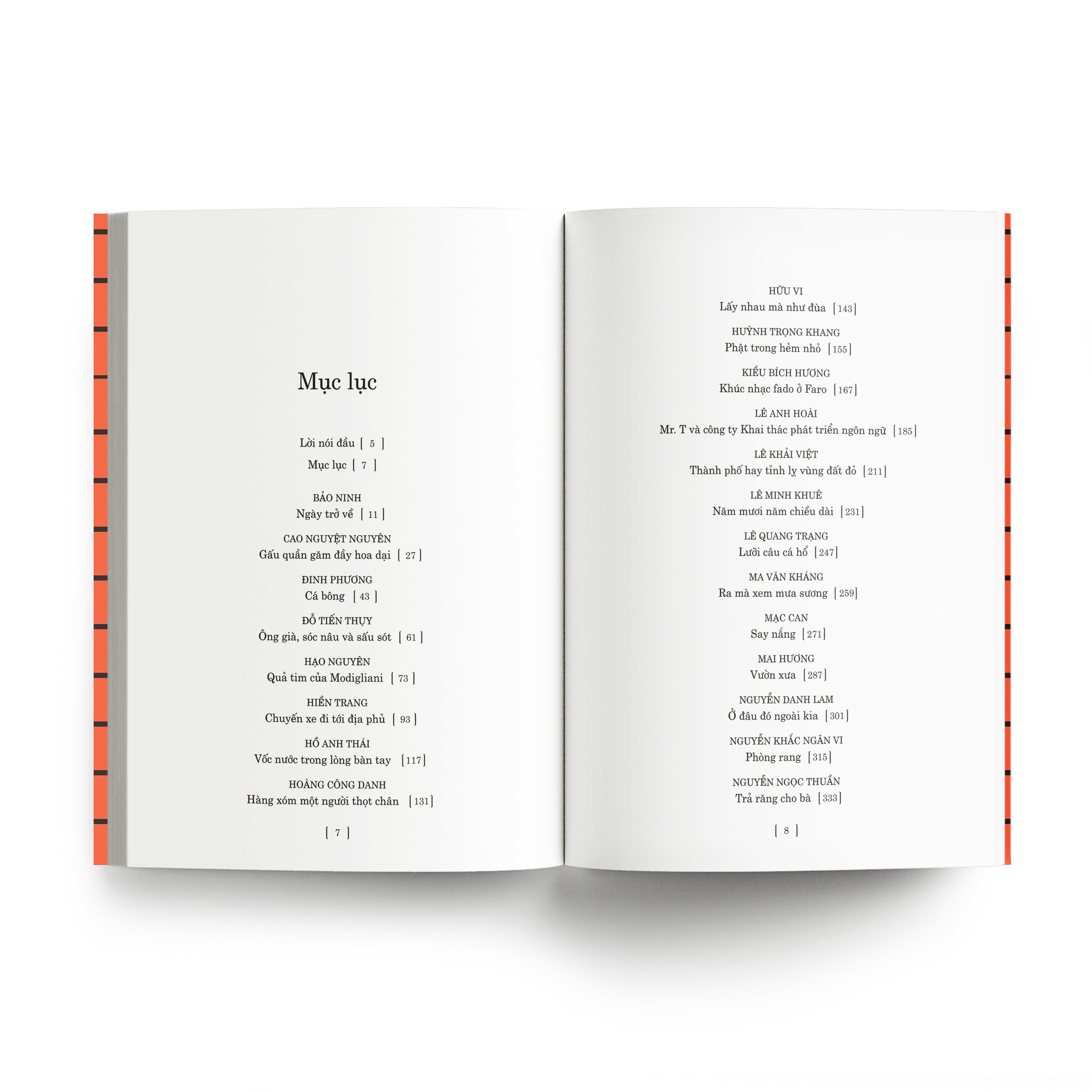 Cuốn sách gồm 41 truyện ngắn đặc sắc của các tác giả – bao gồm những tác giả mới và tác giả đang được mến mộ. Tuyển tập quy tụ những nhà văn tiêu biểu của các miền đất nước; các nhà văn trong mọi ngành, mọi giới; nhà văn thuộc nhiều thế hệ, từ độ tuổi hai mươi cho đến cao niên ngót một thế kỷ; có nhà văn trong nước và nhà văn đang sống ở nước ngoài. Độc giả sẽ được gặp lại những nhà văn được yêu mến từ lâu như Ma Văn Kháng, Bảo Ninh, Hồ Anh Thái, Lê Minh Khuê, Nguyễn Thị Thu Huệ… và được gặp gỡ những gương mặt mới như Võ Đăng Khoa, Hiền Trang, Huỳnh Trọng Khang…