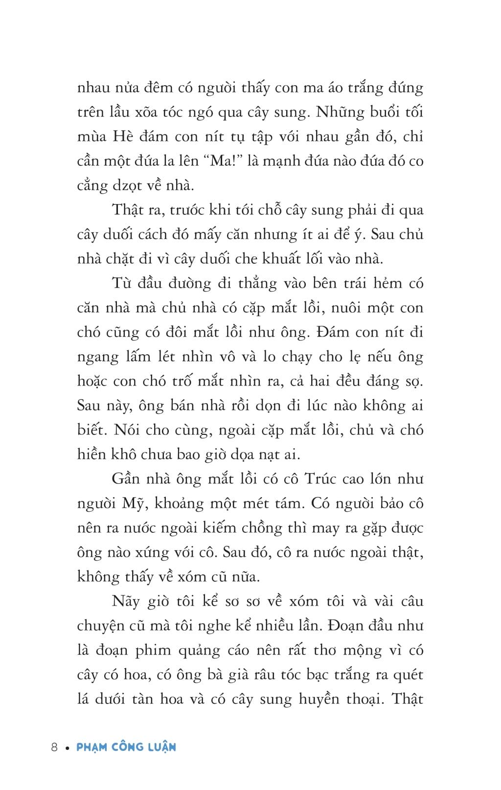 “Hoa lá quanh đây hình như đã góp phần tạo nên tính cách hiền hậu và mơ mộng của ba tôi. Đó là lí do ông yêu thương cái xóm nhỏ với những cây xanh mà cả xóm đồng lòng gìn giữ.”(Trích “Xóm thiên đường”)