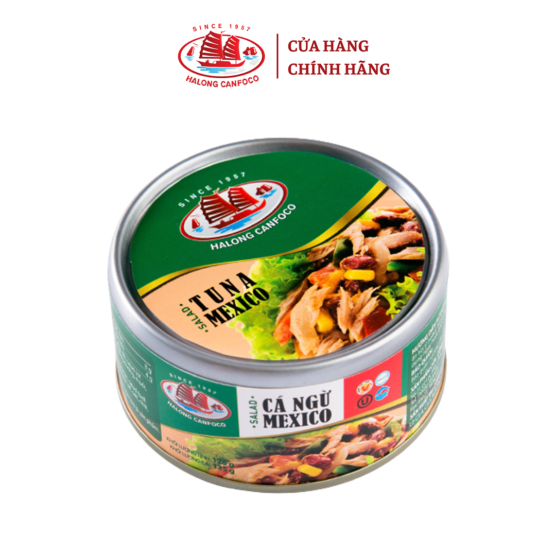 Loại sản phẩm: Salad cá ngừ Mexico. Khối lượng: 175g (135g ráo). Thành phần: Cá ngừ trên 23%, bắp, nước, đậu đỏ, salad (ớt chuông, hành) trên 10%, đường, dấm, dầu hướng dương, muối, ớt,