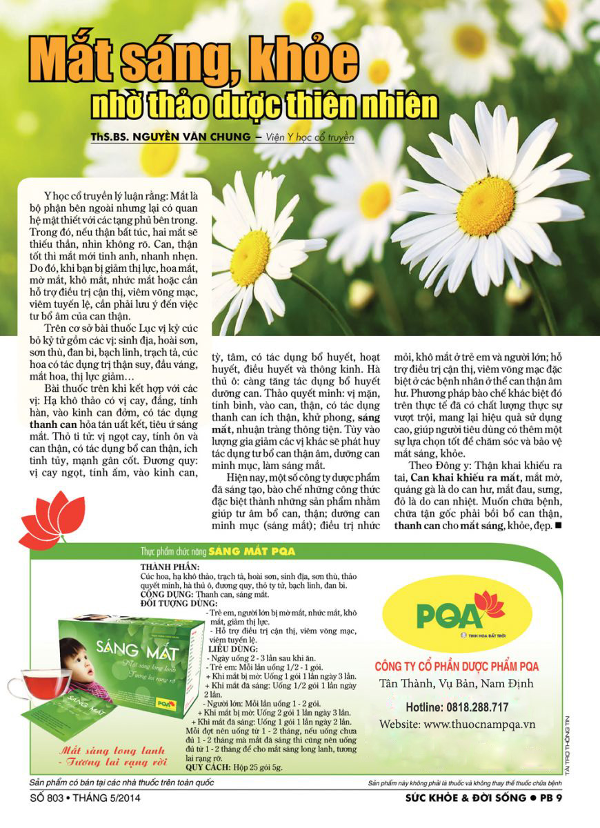 Sáng Mắt PQA Thành Phần Từ Thiên Nhiên Hỗ Trợ Bổ Cho Mắt, Cải Thiện Thị Lực Hộp 25 Gói THÔNG TIN SẢN PHẨM: - Xuất xứ: Việt Nam - Dung tích: Hộp 25 gói