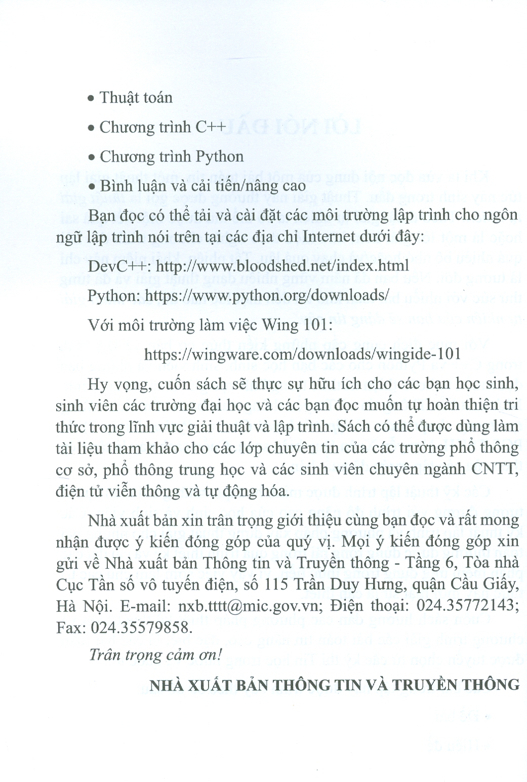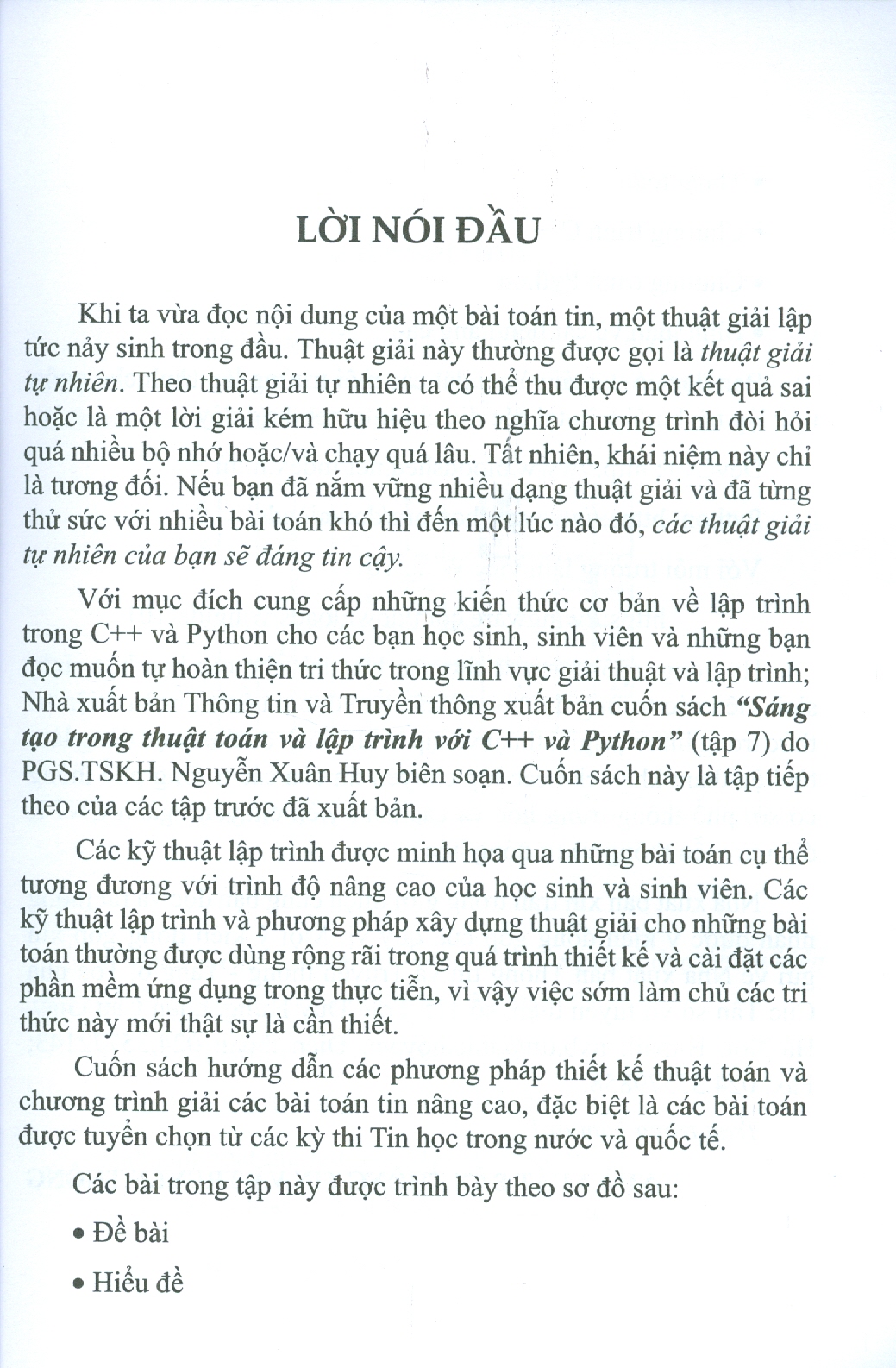 Sáng Tạo Trong Thuật Toán Và Lập Trình (Tập 4) Khi ta vừa đọc nội dung của một bài toán tin, một thuật giải lập tức nảy sinh trong đầu; thuật giải đó thường được